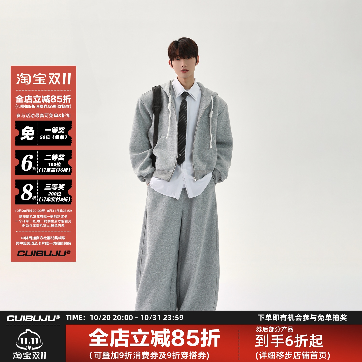 cuibuju Niche Drawstring Shoulder Padded Stiff Hooded Sweatshirt Jacket Set High Street Mopping Scimitar Slacks