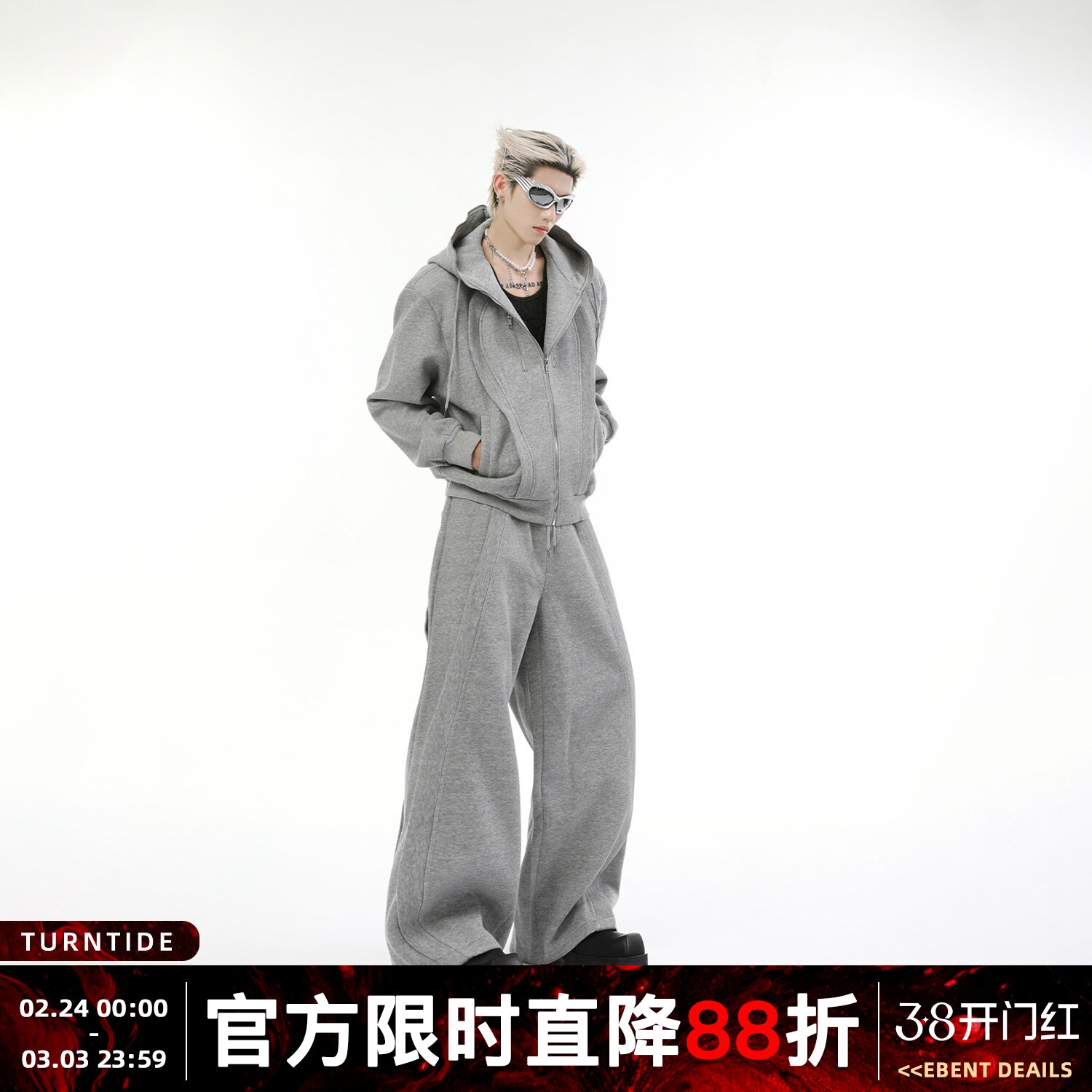 TURNTIDE niche splicing design solid color hooded sweatshirt jacket straight casual trousers sports suit