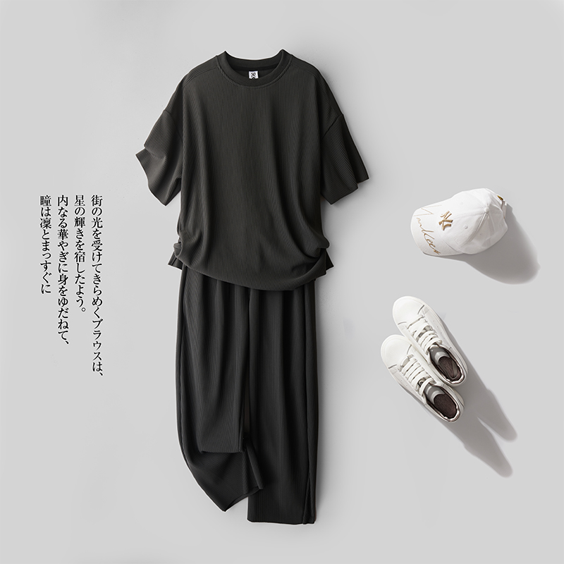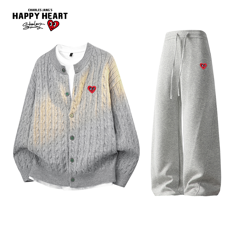 GXG Men's Fall 25 New Crew Neck Waffle Texture Sweatshirt Simple Restraint Leg Pants Commuter Set