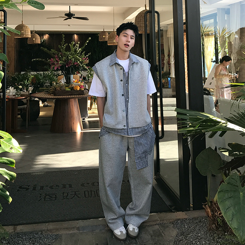 Holocene American fashion brand summer design casual ruffian suit fake two fashionable trousers with a complete set
