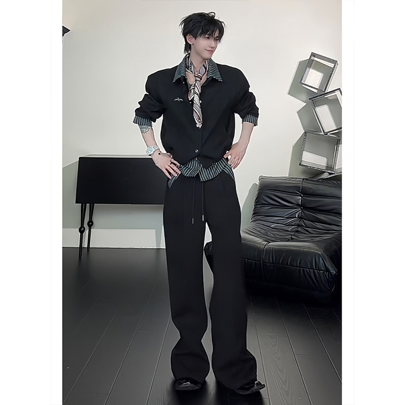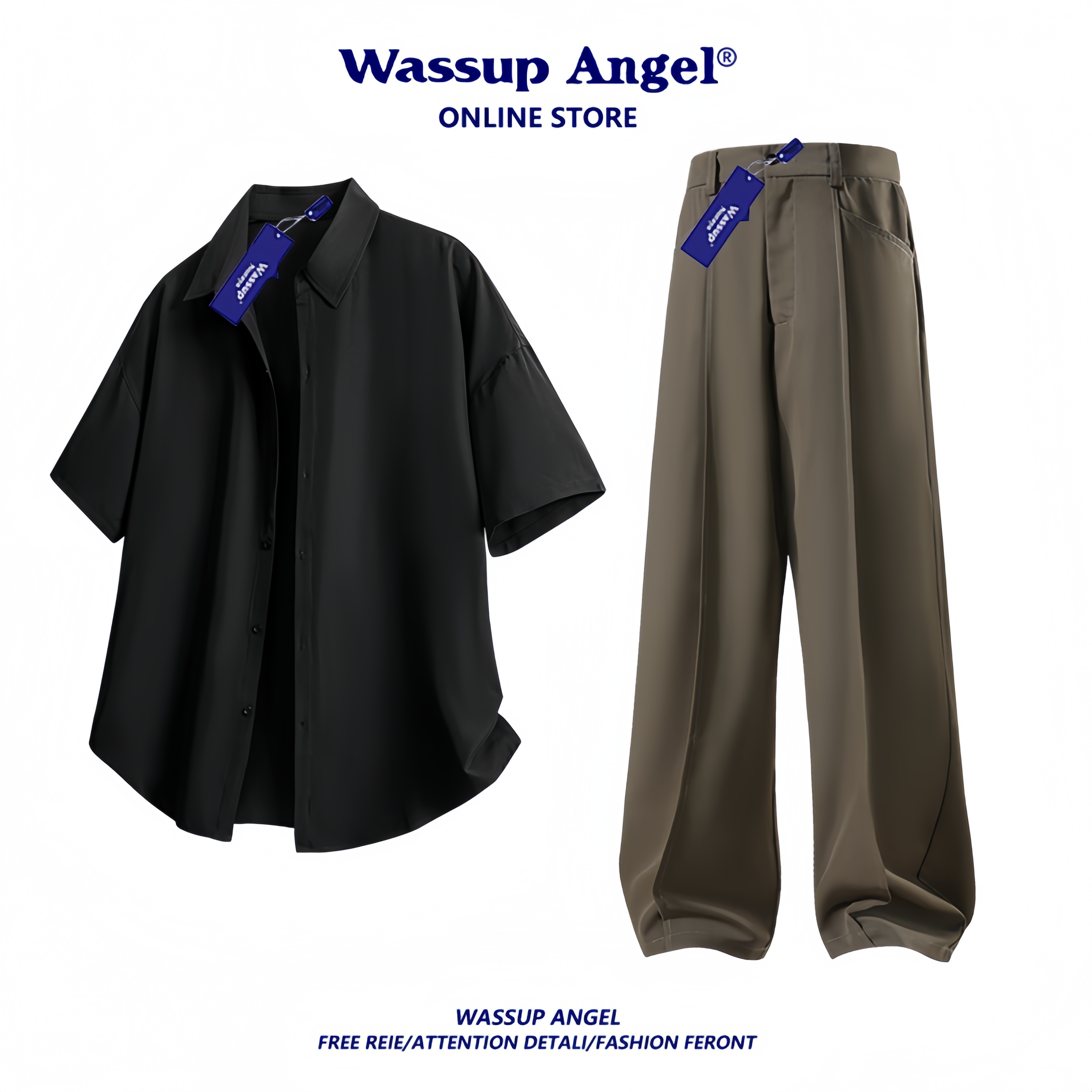 WASSUP ANGEL draped ice silk shirt trousers suit men's summer thin loose straight casual trousers men
