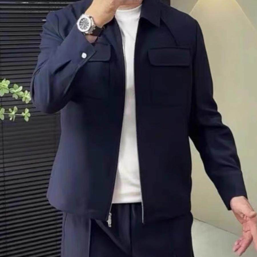 European goods trendy simple lapel jacket trousers two-piece set men's spring and autumn new light luxury versatile casual sports suit