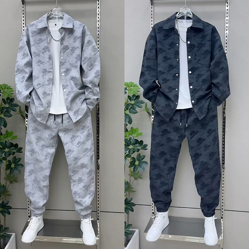 American trendy brand tie-dye suit, men's autumn and winter new fashion loose lapel jacket casual trousers two-piece set