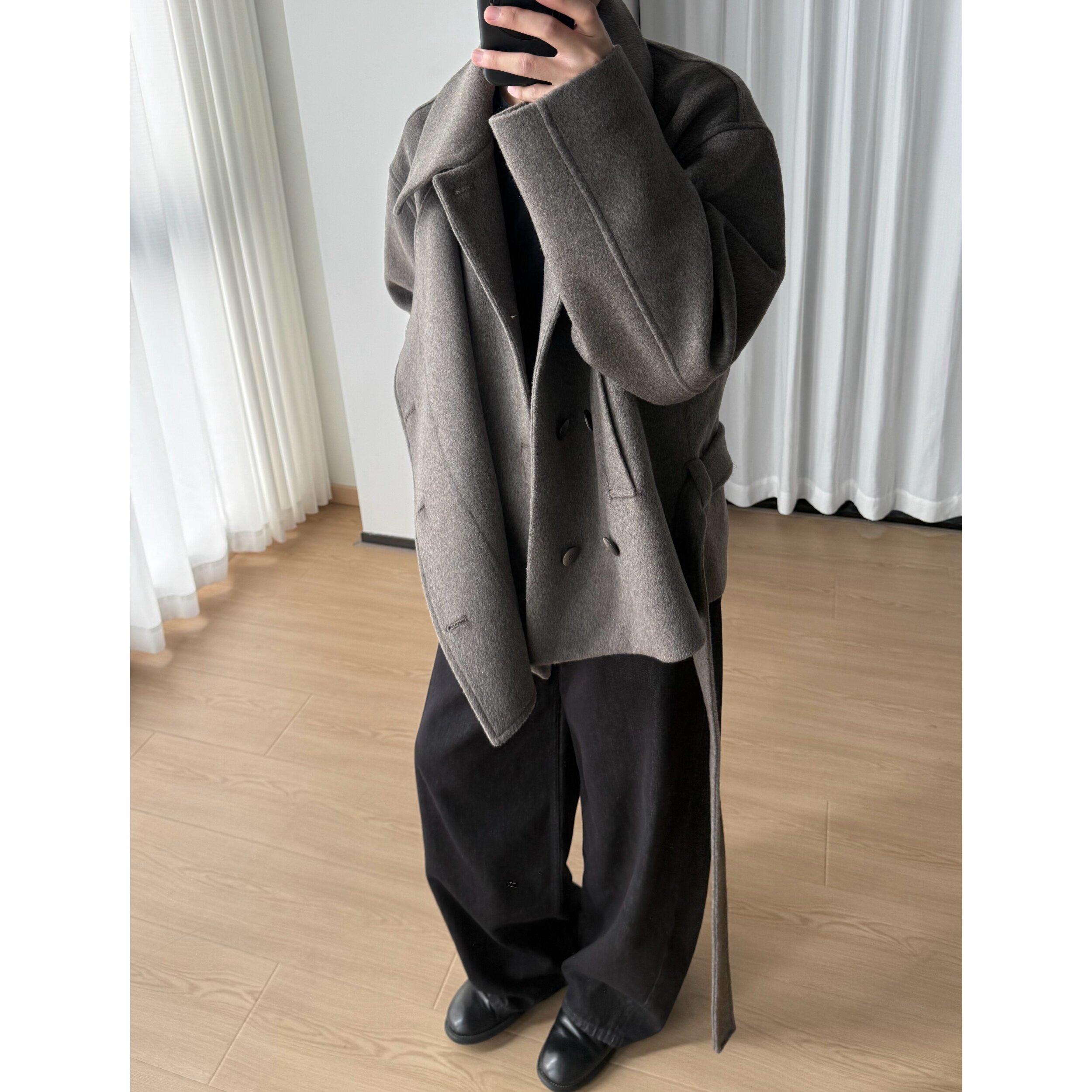 JCAESAR COAT Diagonal Zip Lace-up Coat High Gram Weight 60% Wool Slightly loose length and short version