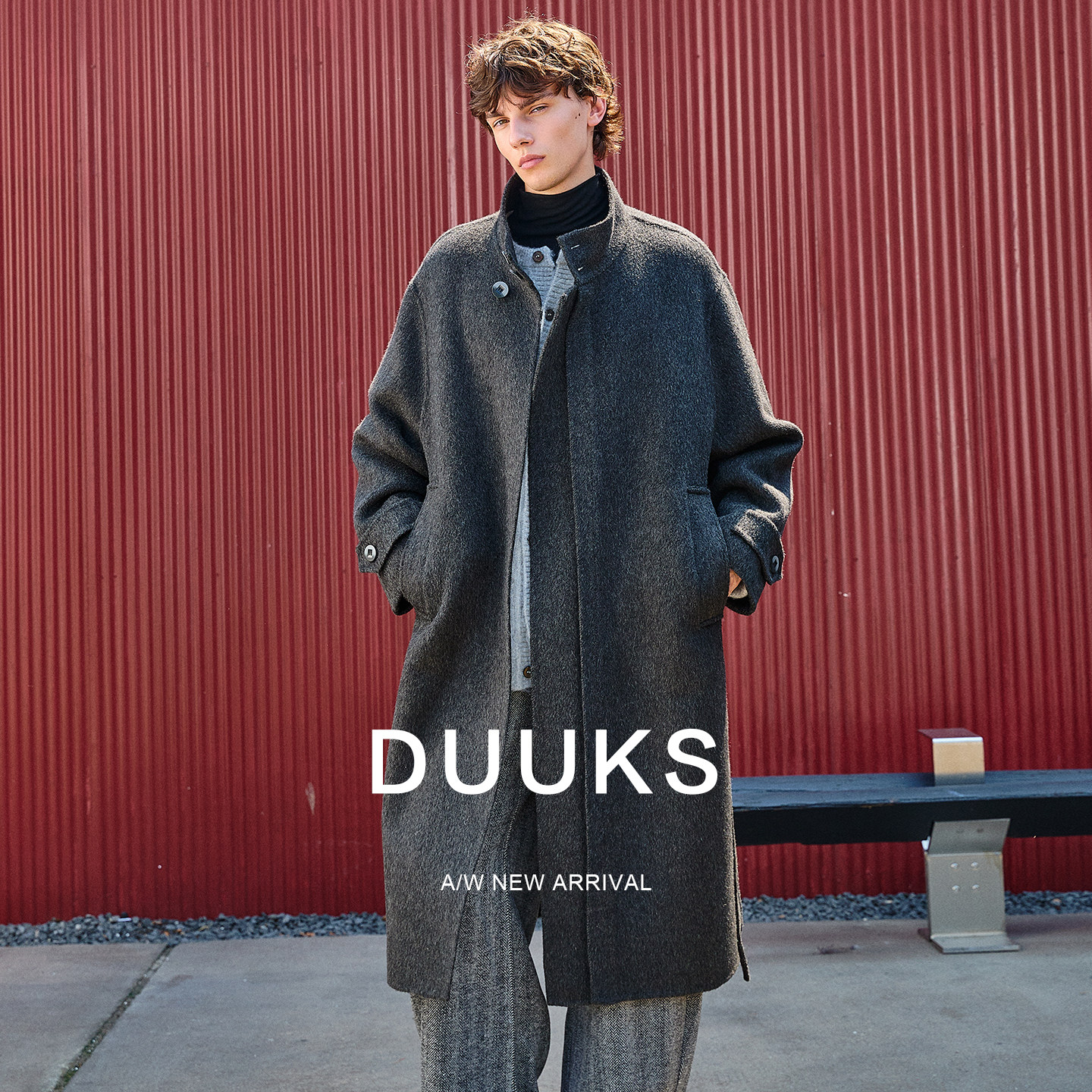 DUUKS all-wool woolen coat men's 2025 new autumn and winter Korean version of fleece reversible dweed jacket mid-length