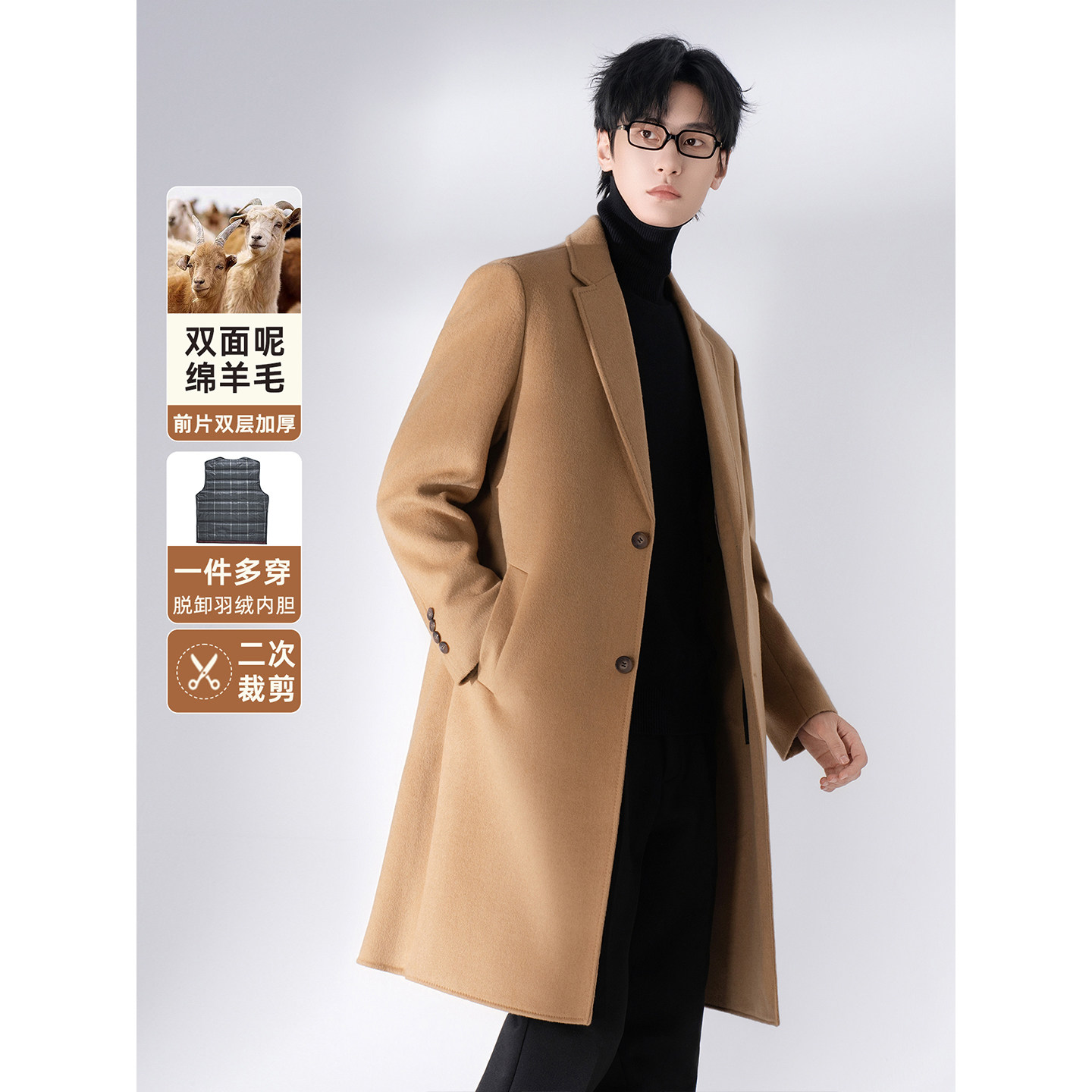 Autumn and winter down liner full wool coat men's mid-length model 2025 new high-end thickened woolen jacket