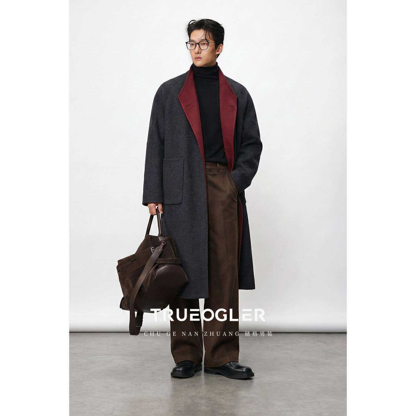 【Observations】Autumn and winter Korean minimalist silhouette reversible wool blend wool long coat jacket male