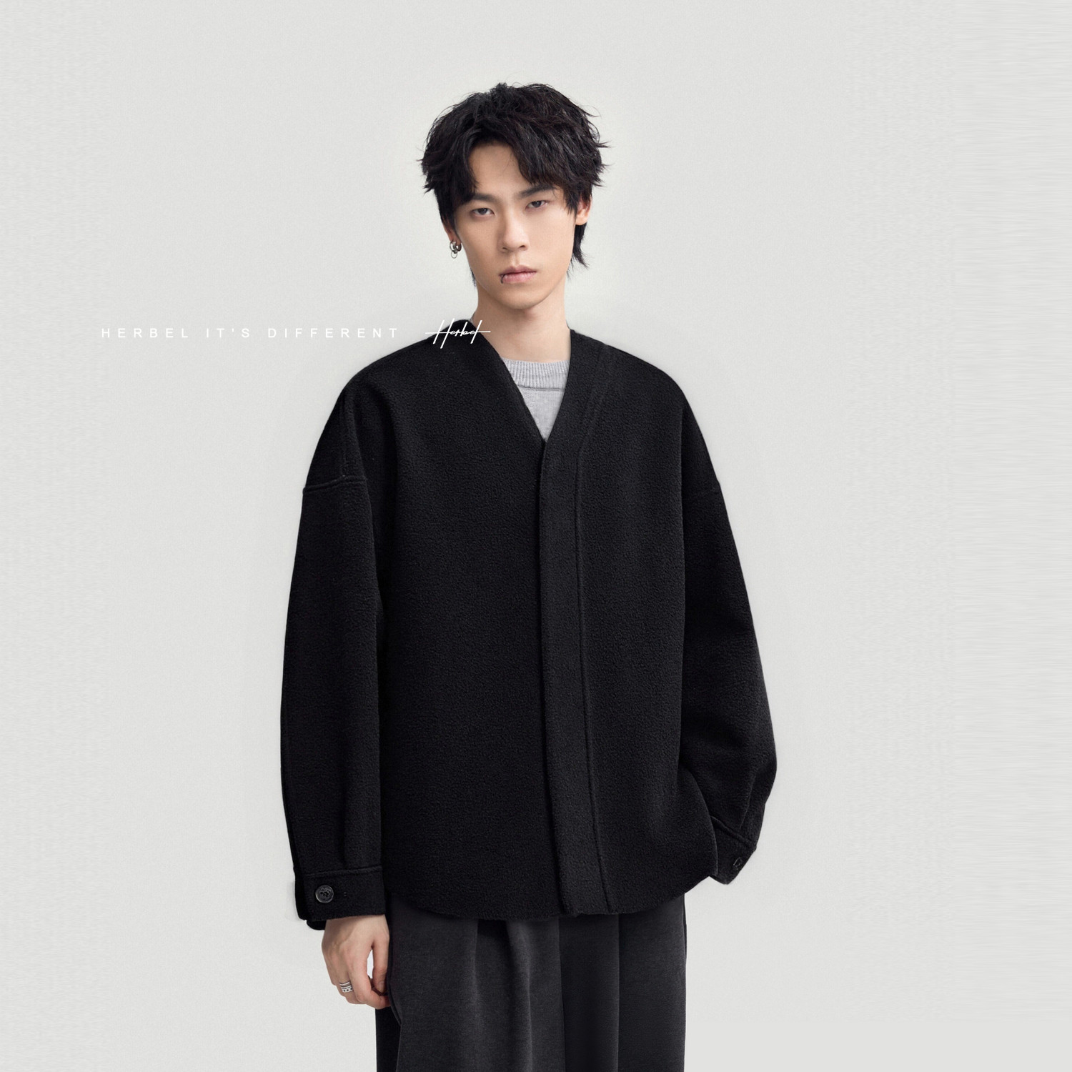 HERBEL/Black and White Tweed Coat Men's Winter 2025 New Fashion and Versatile Popular Solid Color Cropped Coat