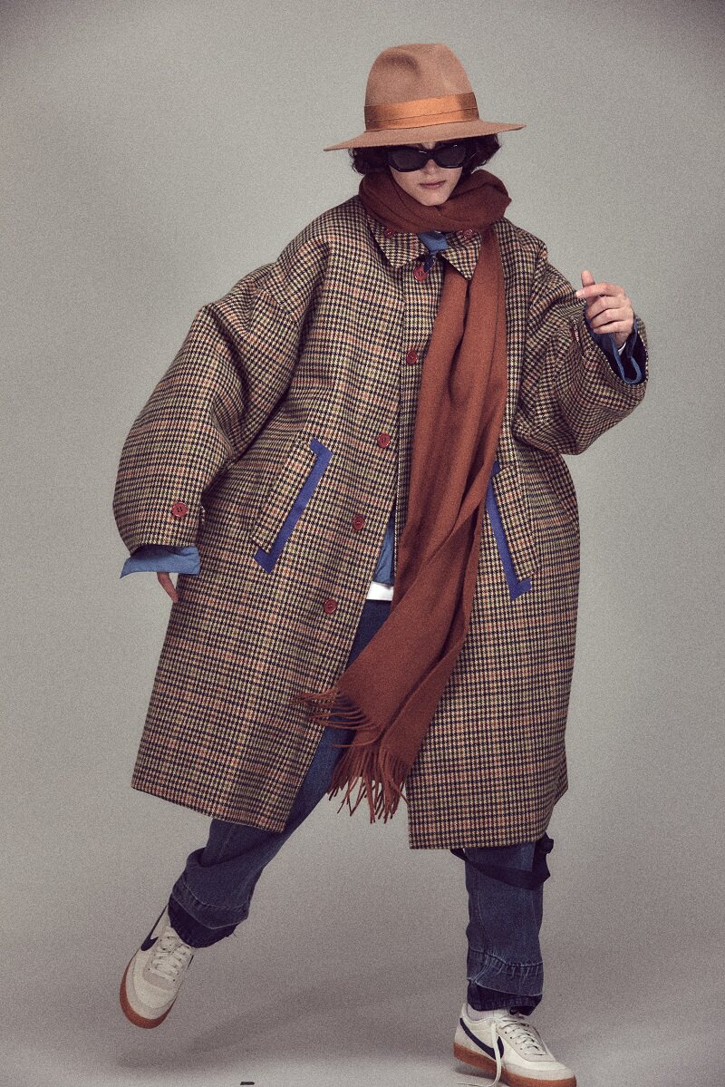 ELI [Oppenheimer] Hepburn style wool blend lapel cinematic silhouette belt reversible dweed coat winter