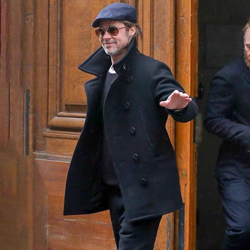 Pete matched the 90 wool peacoat Meldon navy coat men's fall and winter thickened mid-length coat