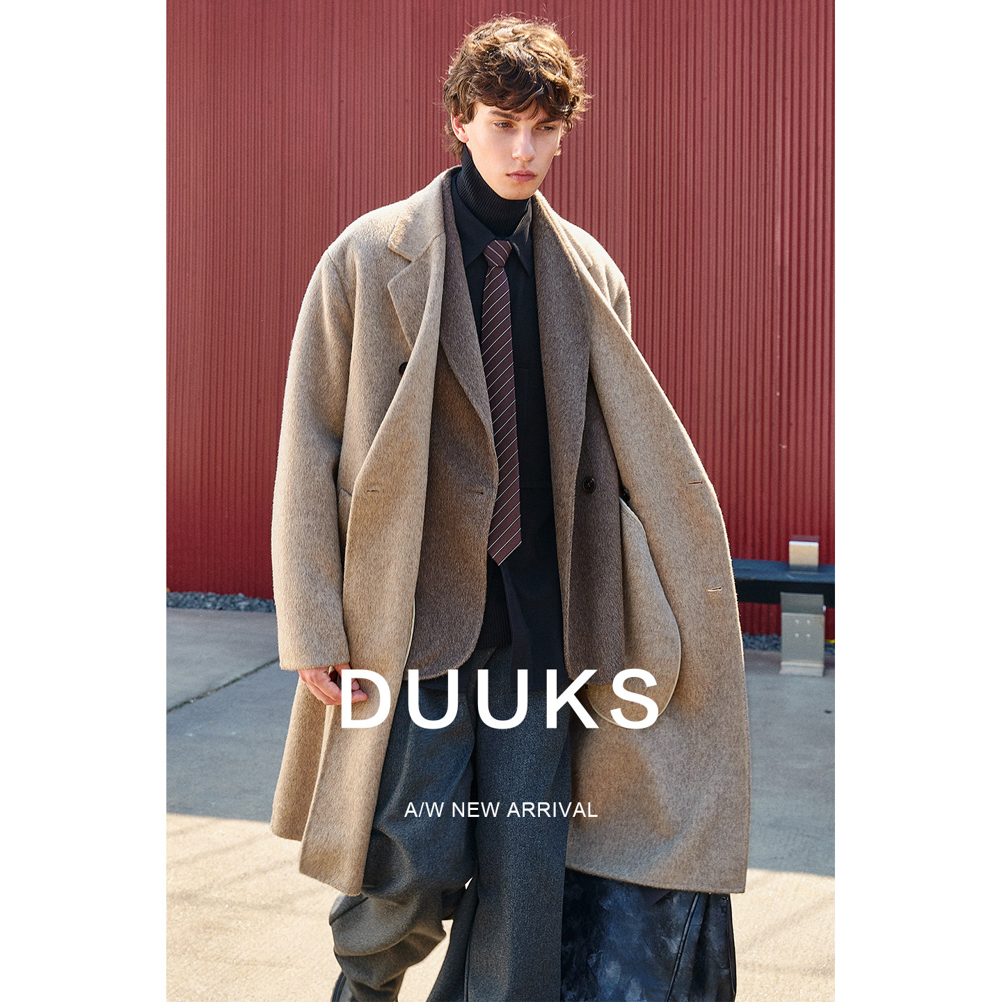 DUUKS fake two pieces 100% wool woolen coat men's mid-length autumn winter Korean version fleece reversible tweed jacket