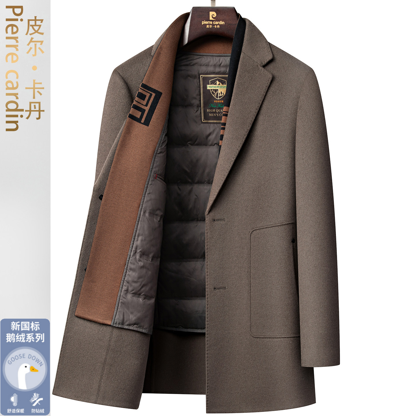 Pierre Cardin middle-aged and elderly 100% wool coat down jacket men's dad winter wear thickened jacket coat