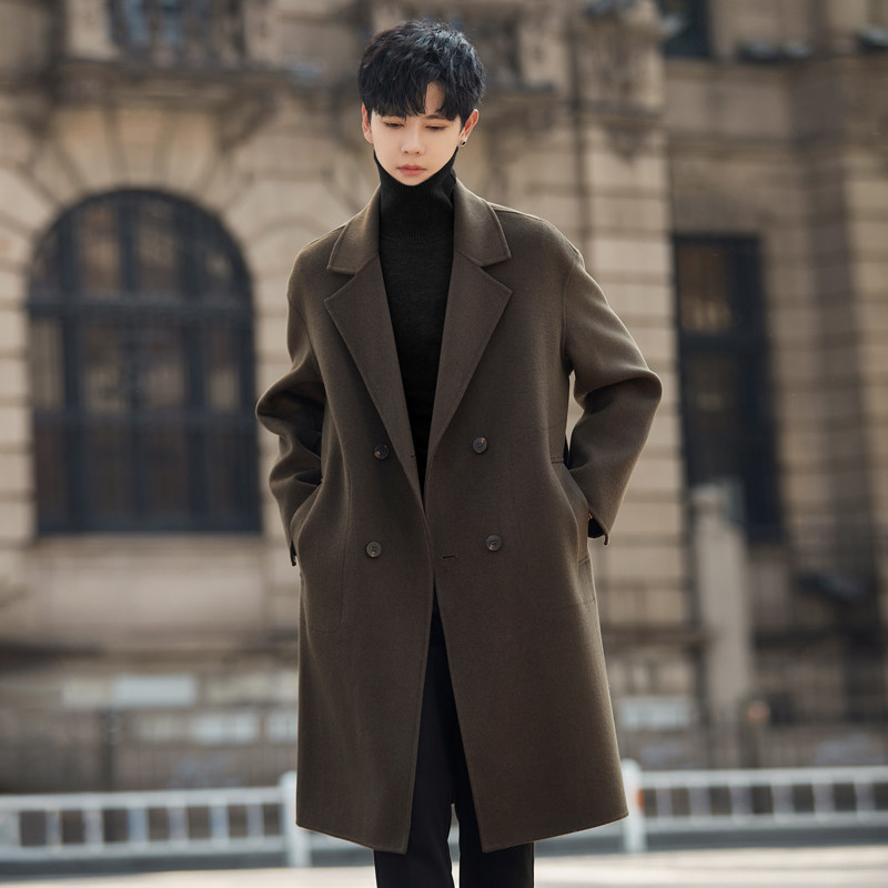 25 New Men's Double-Sided Fleece Coat Mid-length Autumn and Winter Tweed Jacket Tweed Tweed Coat Thickened Luxury