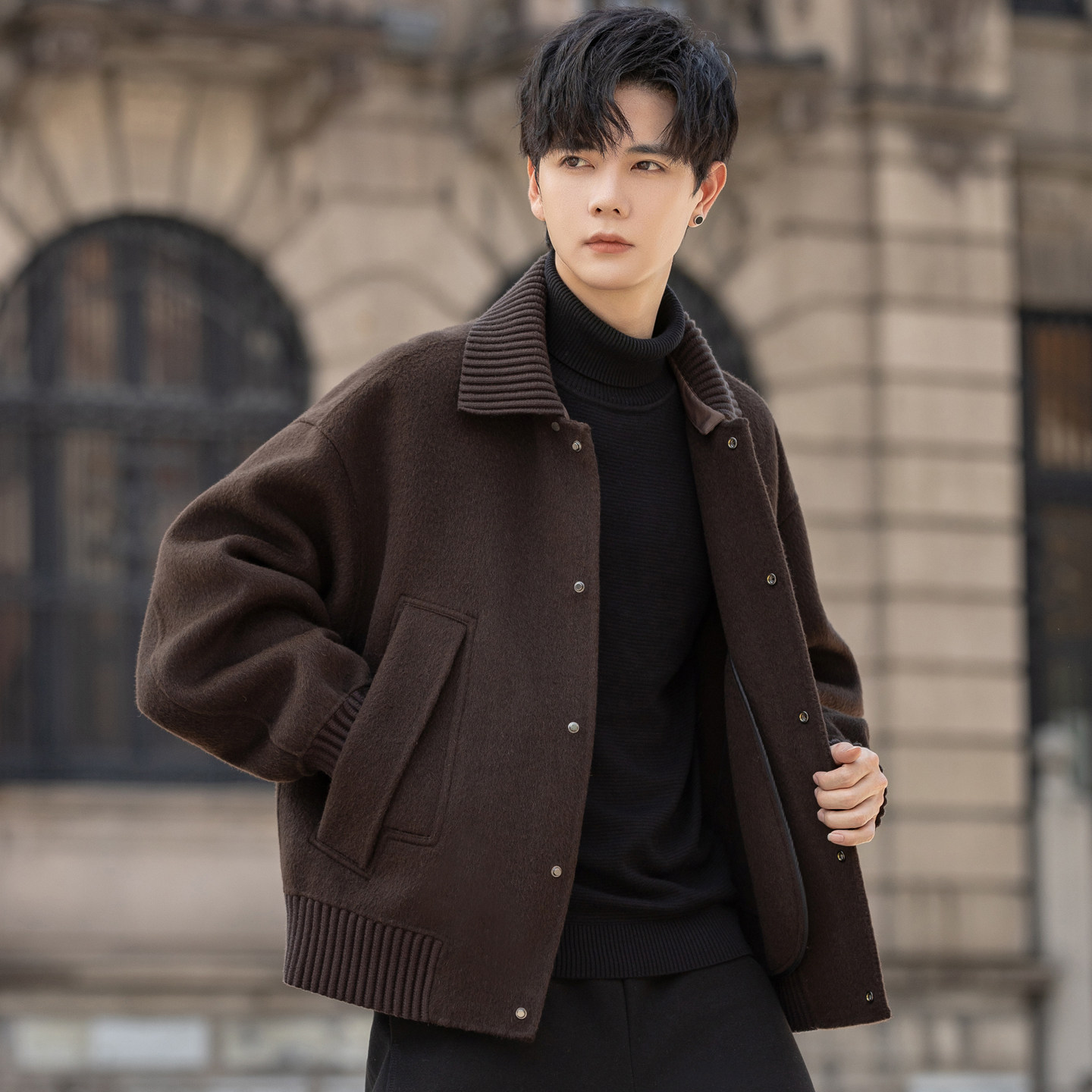Men's double-sided fleece coats, cropped detachable lapels, woolen coats, ribbed pure wool woolen jackets, thickened in winter