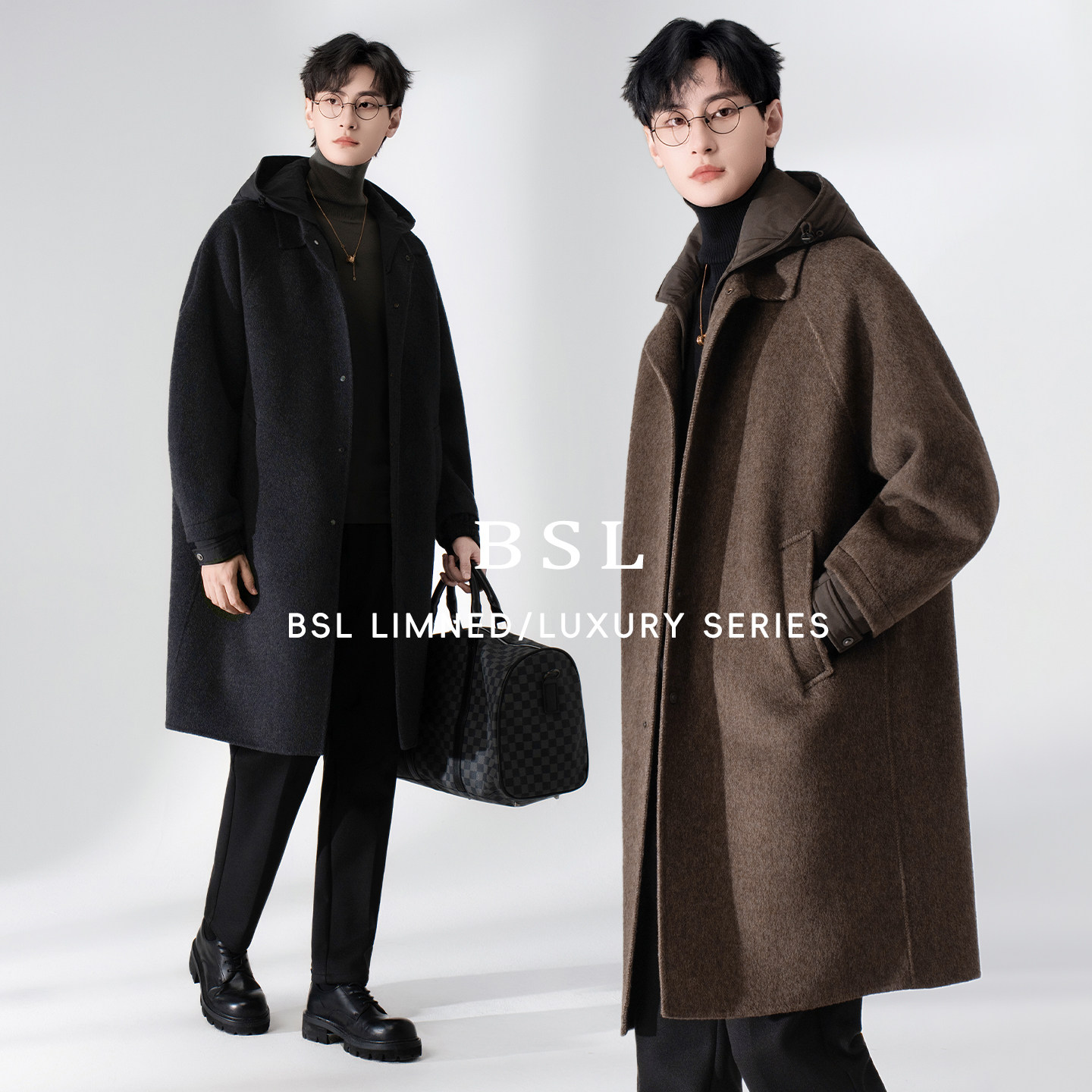 Reversible wool woolen coat, men's mid-length cashmere-free 2025 autumn/winter new hooded trench coat men's coat