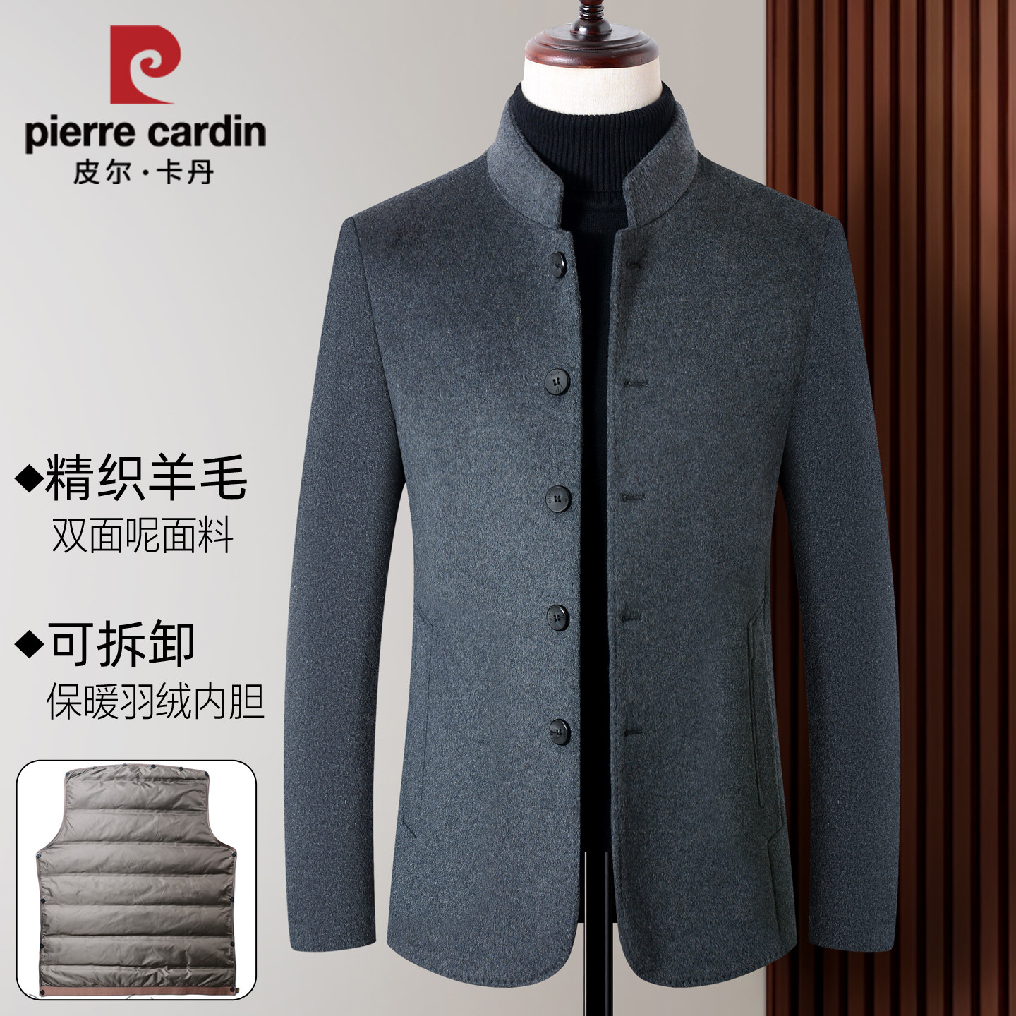 Pierre Cardin's new reversible cashmere coat, men's short middle-aged stand-up collar wool jacket, dad's coat