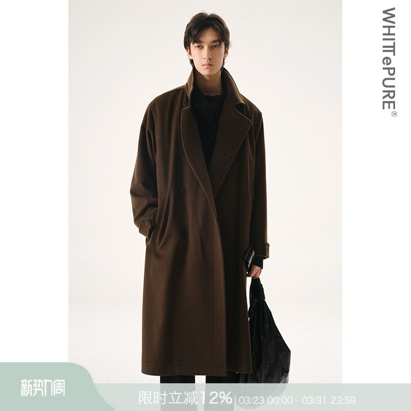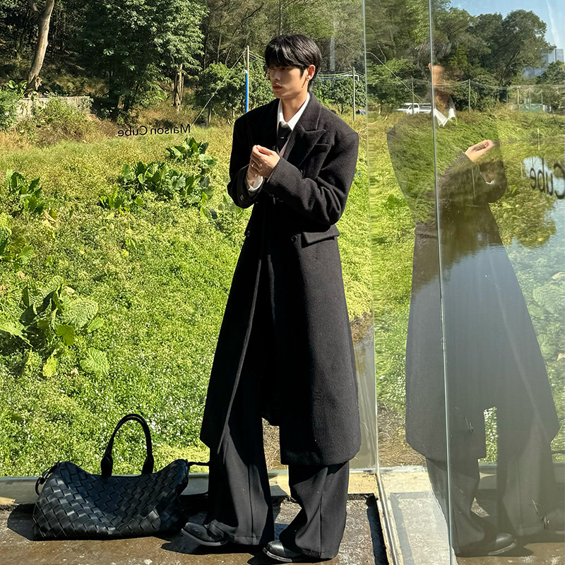 【PEICHUAN】Autumn and winter double-sided wool coat Men's tweed coat with one button long thickened jacket
