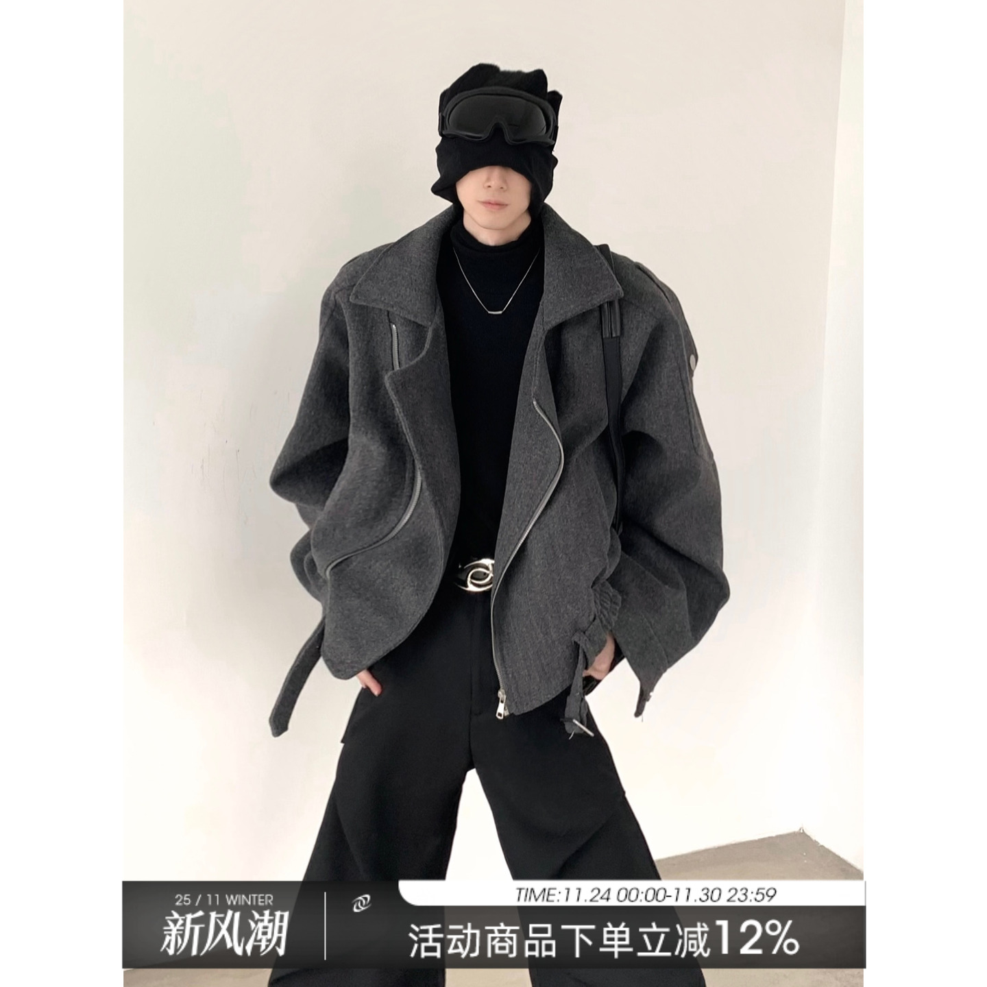 Autumn mountain style/niche deconstruction high-end gray woolen jacket men's winter woolen coat waist short jacket