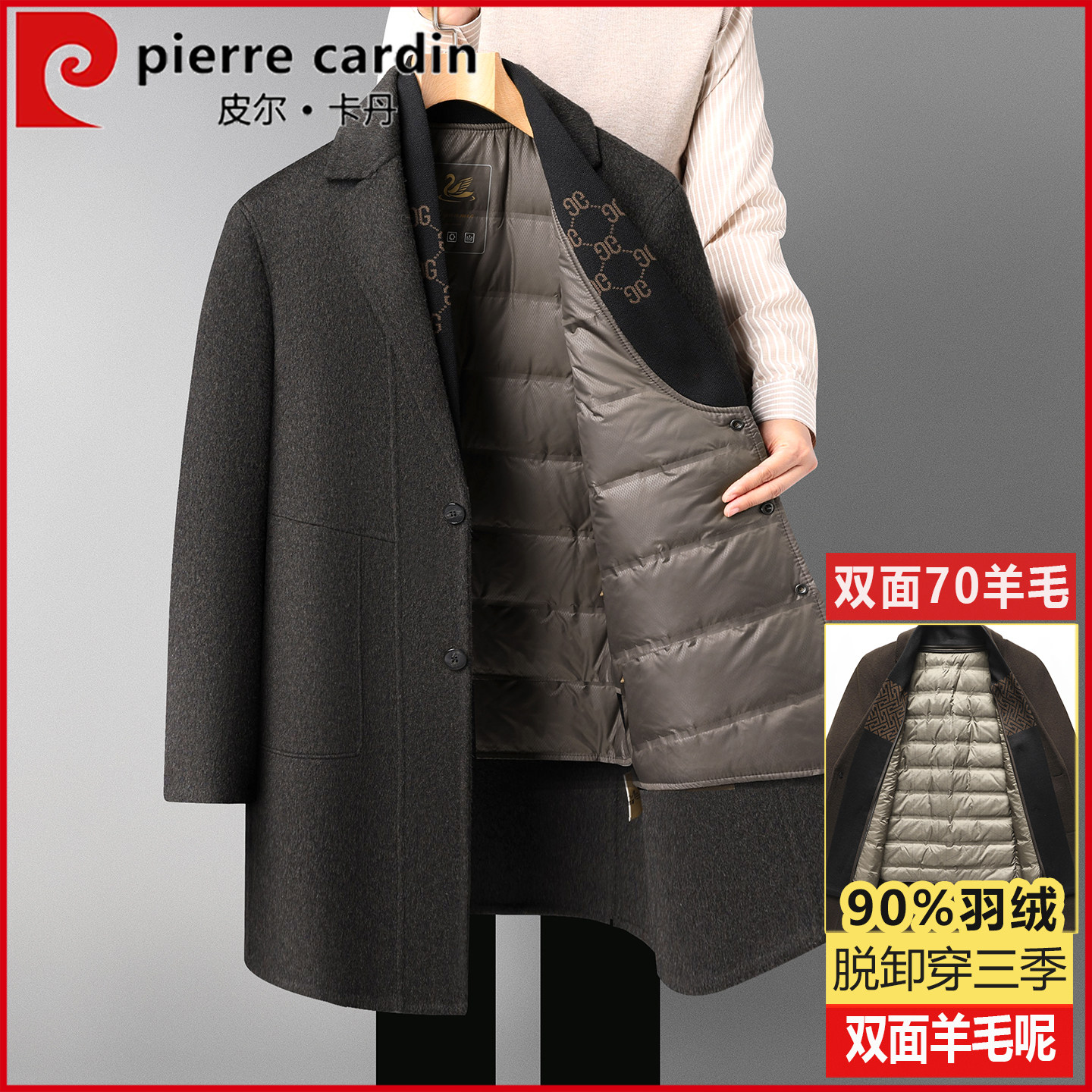 Pierre Cardin, reversible wool coat, men's mid-length suit, down jacket, middle-aged dad business winter coat