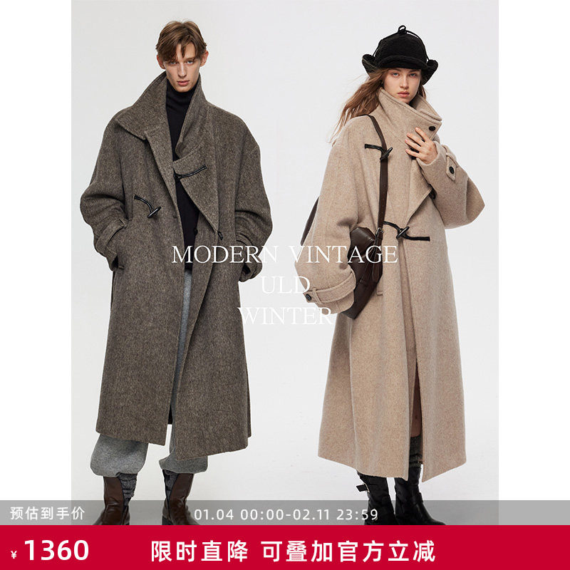 ULD/90s vintage modern silk wool texture stand-up collar horn buckle handmade coat