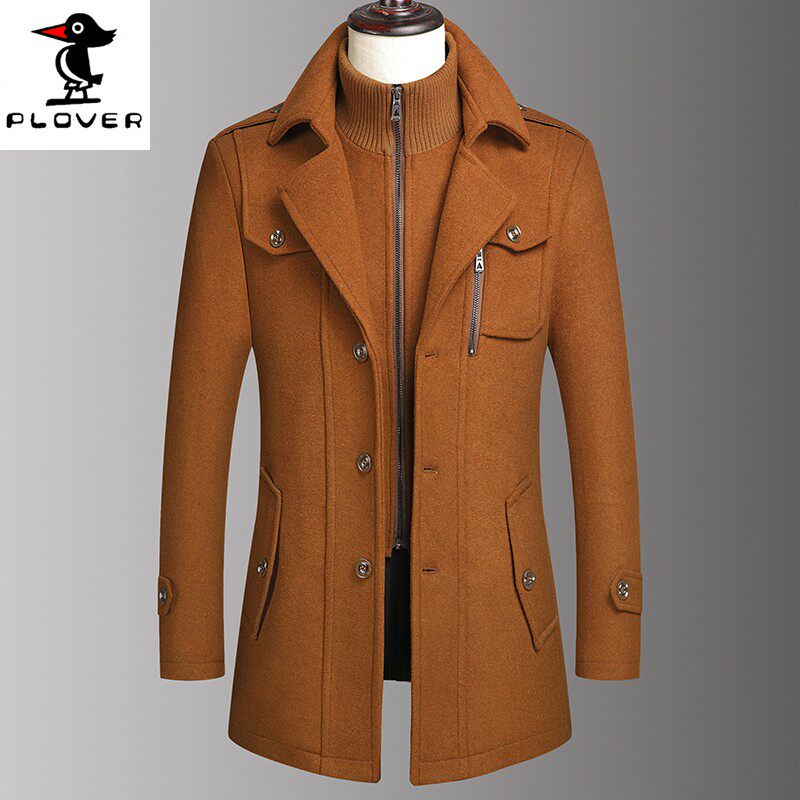 Brand autumn and winter middle-aged woolen coats, men's middle-aged and elderly fathers, mid-length trench coats, woolen wool coats