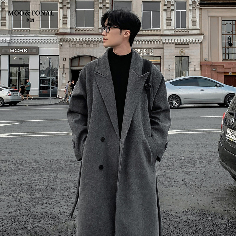 Woolen coat men's autumn and winter padded thickened loose casual over the knee trench coat mid-length high-end woolen jacket
