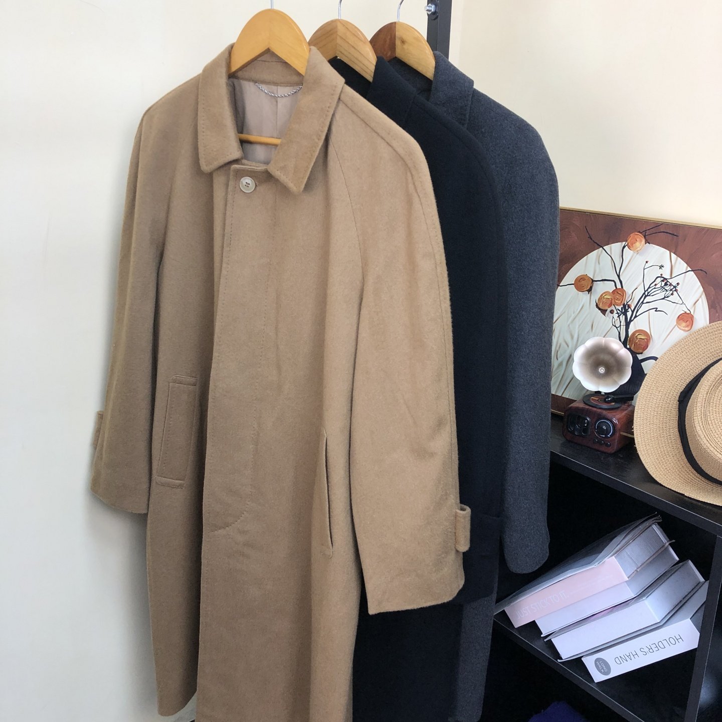 Vintage Japanese cashmere coat autumn and winter mid-length high-end up-shoulder British versatile vintage jacket