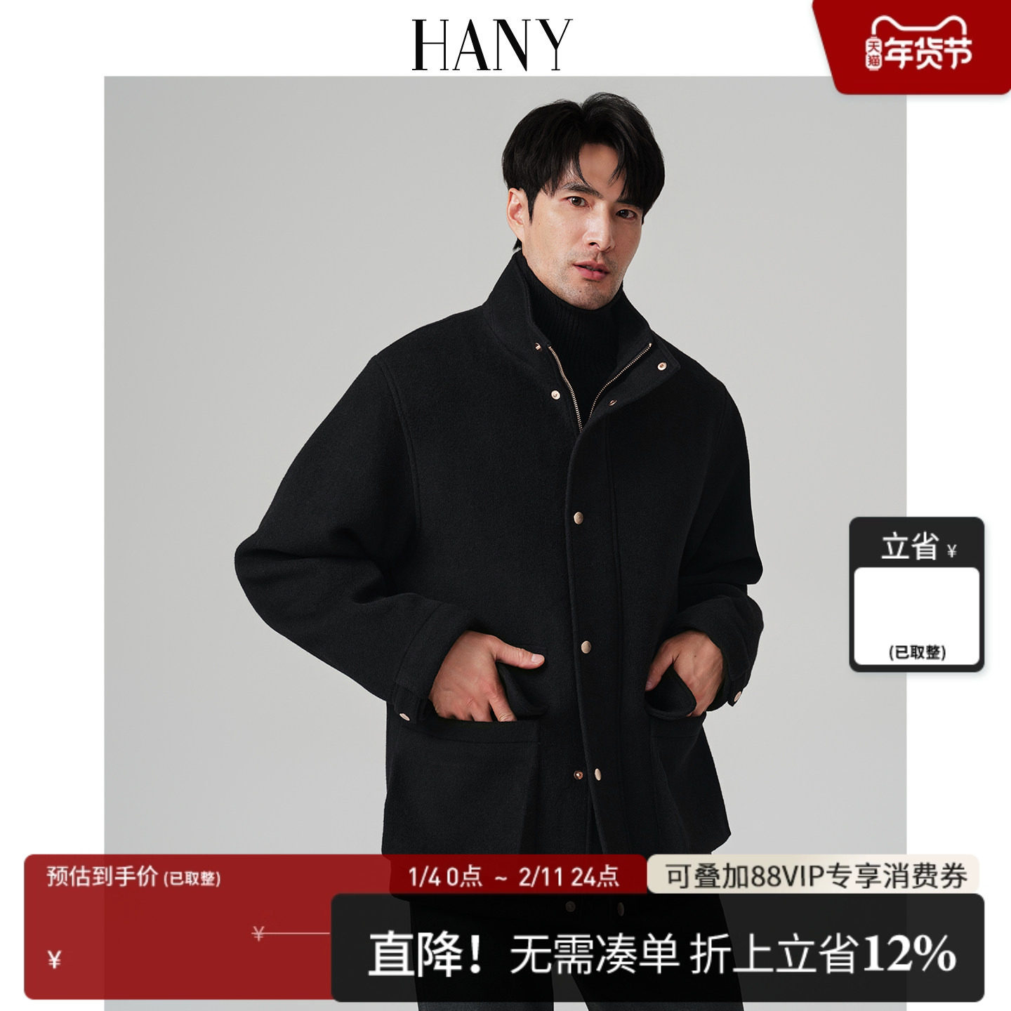 HANY [super thick camel velvet mulberry silk] hunting jacket men's new wool coat high-end woolen jacket autumn and winter