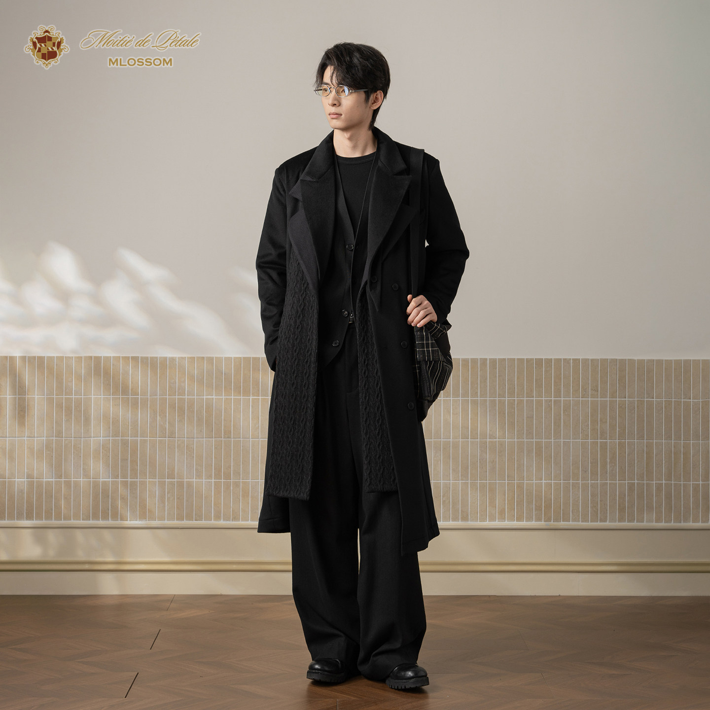 Half-petal "final chapter" cashmere wool detachable scarf down liner coat black woolen jacket