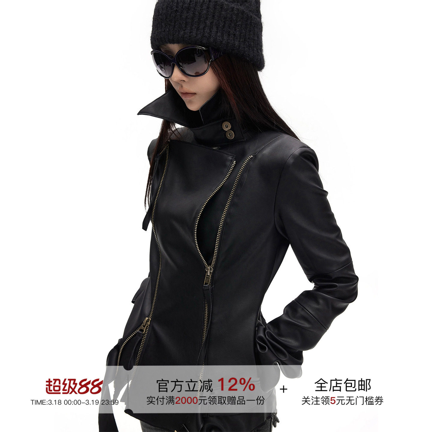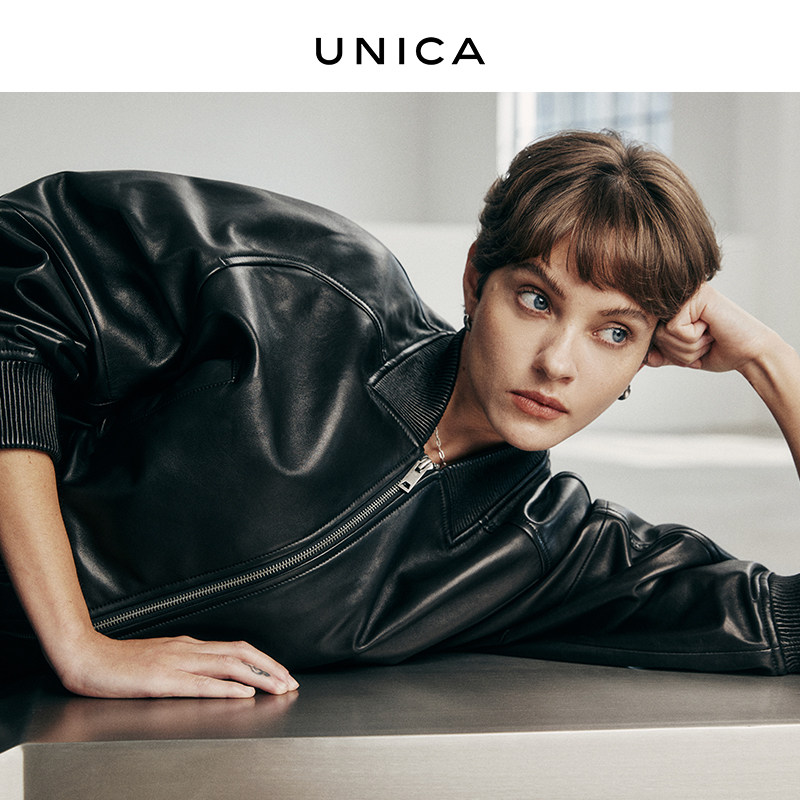 UNICA/Purple Label strongly promotes fashionable PP style European imported sheepskin_double-open zipper jacket leather jacket short coat