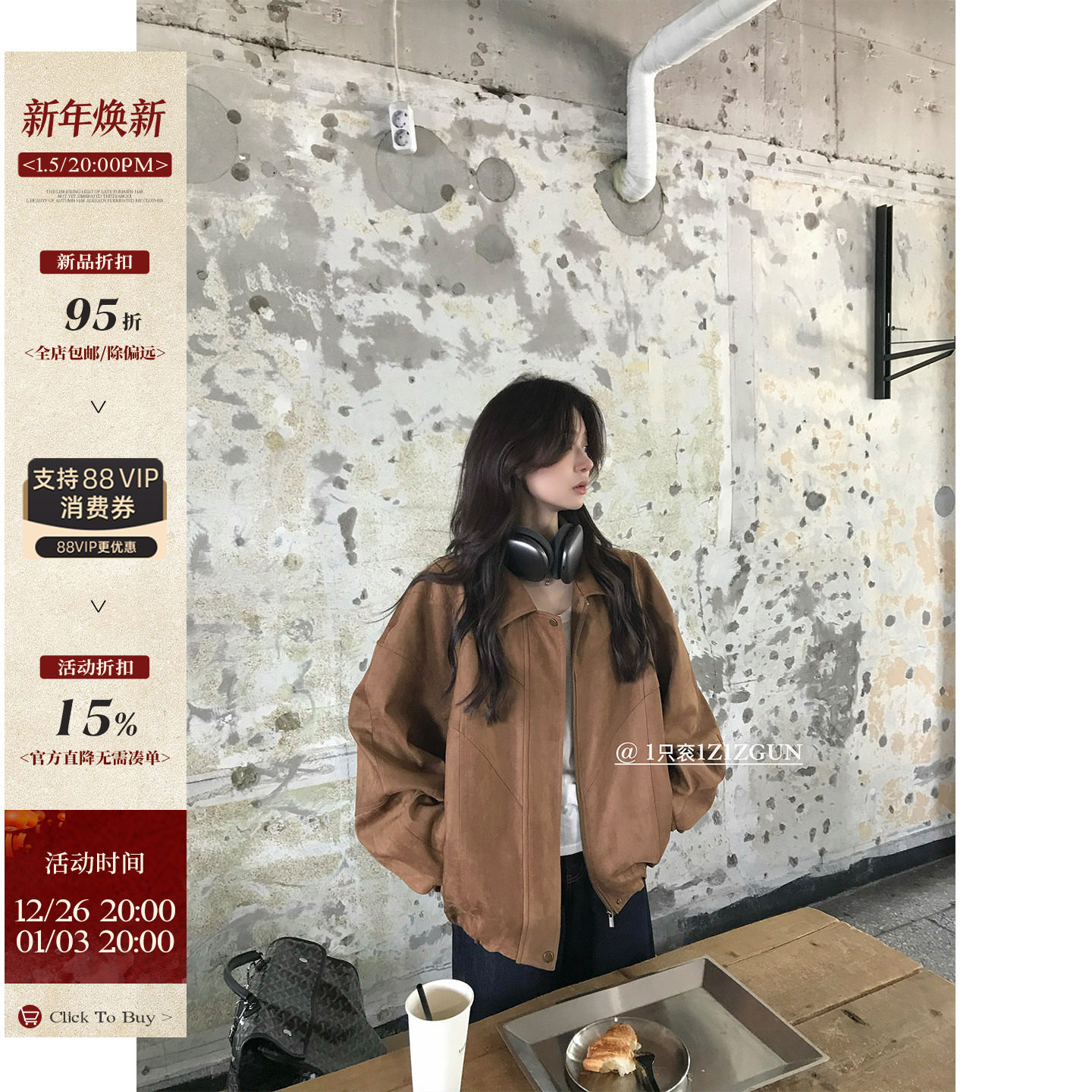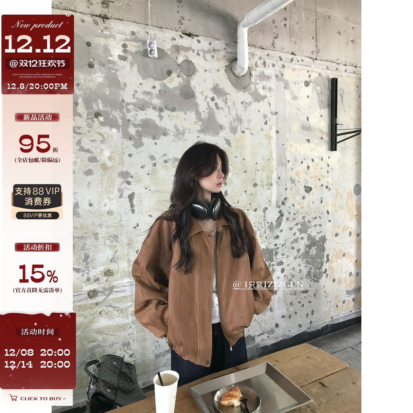 Maillard brown motorcycle leather jacket women's autumn American retro loose jacket amber