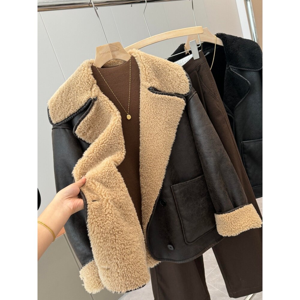 Cabinet 849! Not replaced! Pick up the leaks! Autumn Winter Vintage Lapel Lapel Lamb Wool Jacket S091