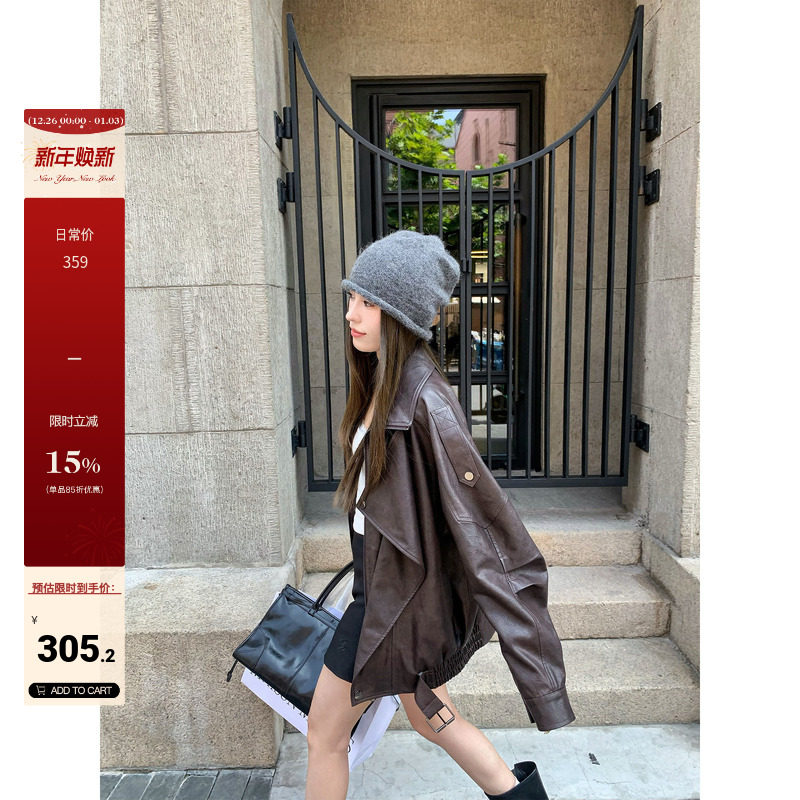 Hhyii Manhattan Brown leather jacket women's spring and autumn new American biker silhouette high-end jacket