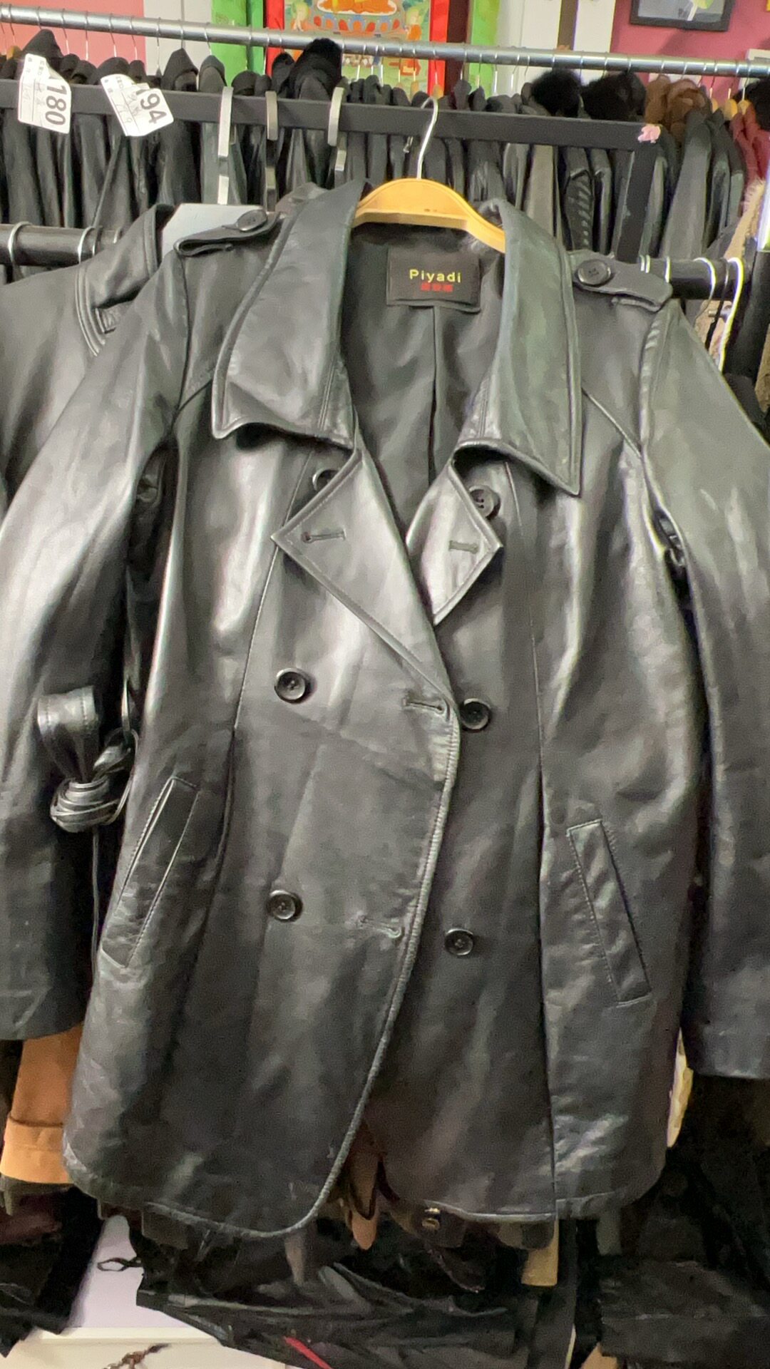 Black label "London paper leather trench coat" New Zealand imported oil wax sheepskin relaxed retro mid-length leather jacket