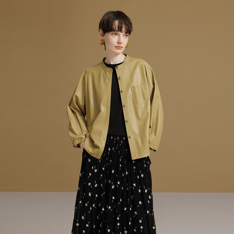 CCHER classic reshaped small pocket shacket jacket ultra-thin washed leather XWFG0974 separate without folding