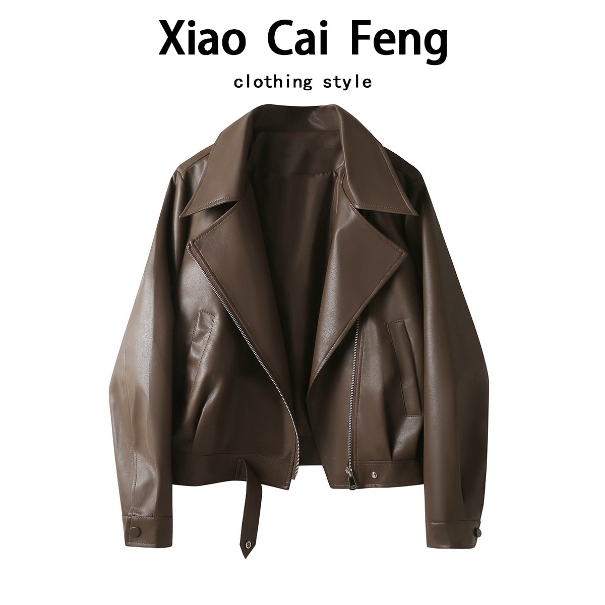 Maillard brown coffee leather jacket women's short 2026 spring and autumn new suit lapel motorcycle jacket trend