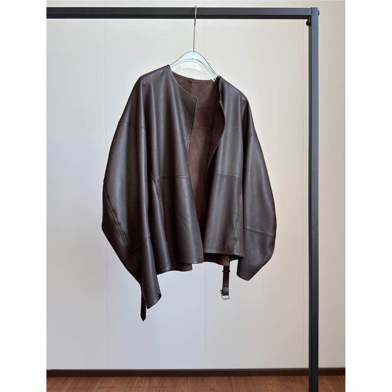 Fashionable scimitar sleeve lychee pattern sheepskin jacket women's casual loose leather leather jacket design lace-up cardigan
