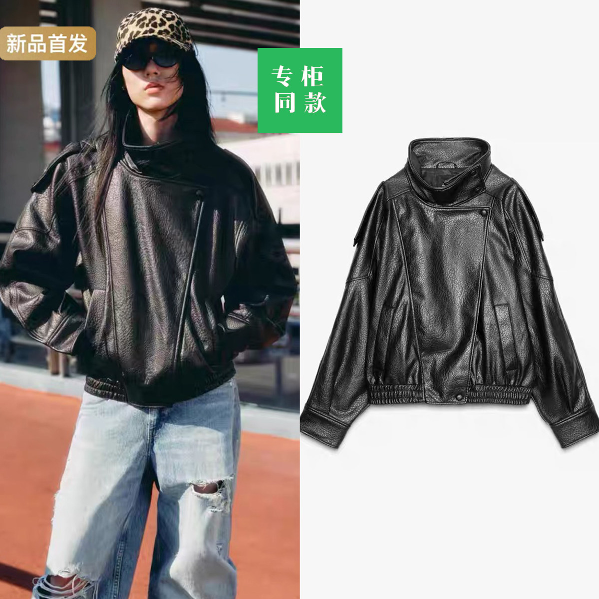 Cabinet 629! ZA Autumn New Women's Black Faux Leather Stand Collar Long Sleeve Jacket Leather Jacket 4391872 800