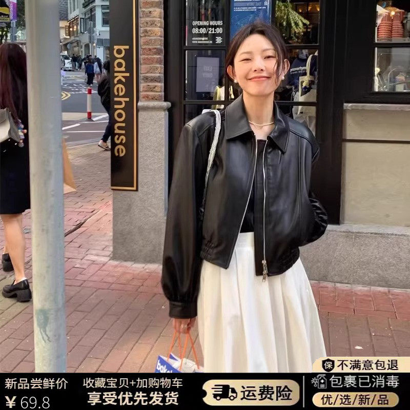 Black cropped leather jacket women's jacket 2025 spring and autumn new explosive high-end sense is unique and super good-looking