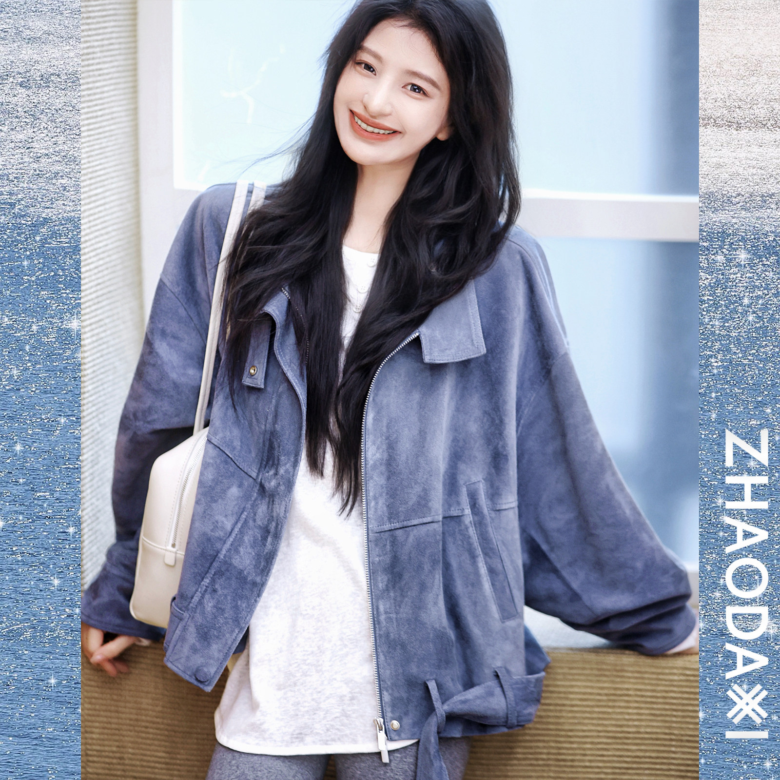 Zhao Daxi|Toast Leather Jacket|Imported Ken. Nia suede sheepskin is light and soft. Pair it with a skinny jacket