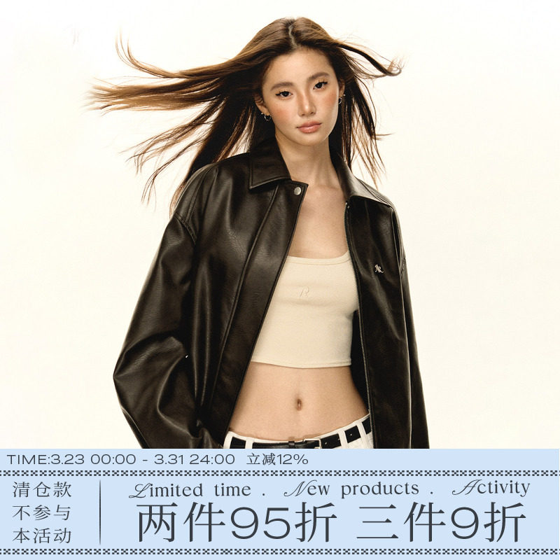 Ariseism American Vintage Lapel Leather Jacket Women's 2026 Spring New Loose PU Leather Jacket Top