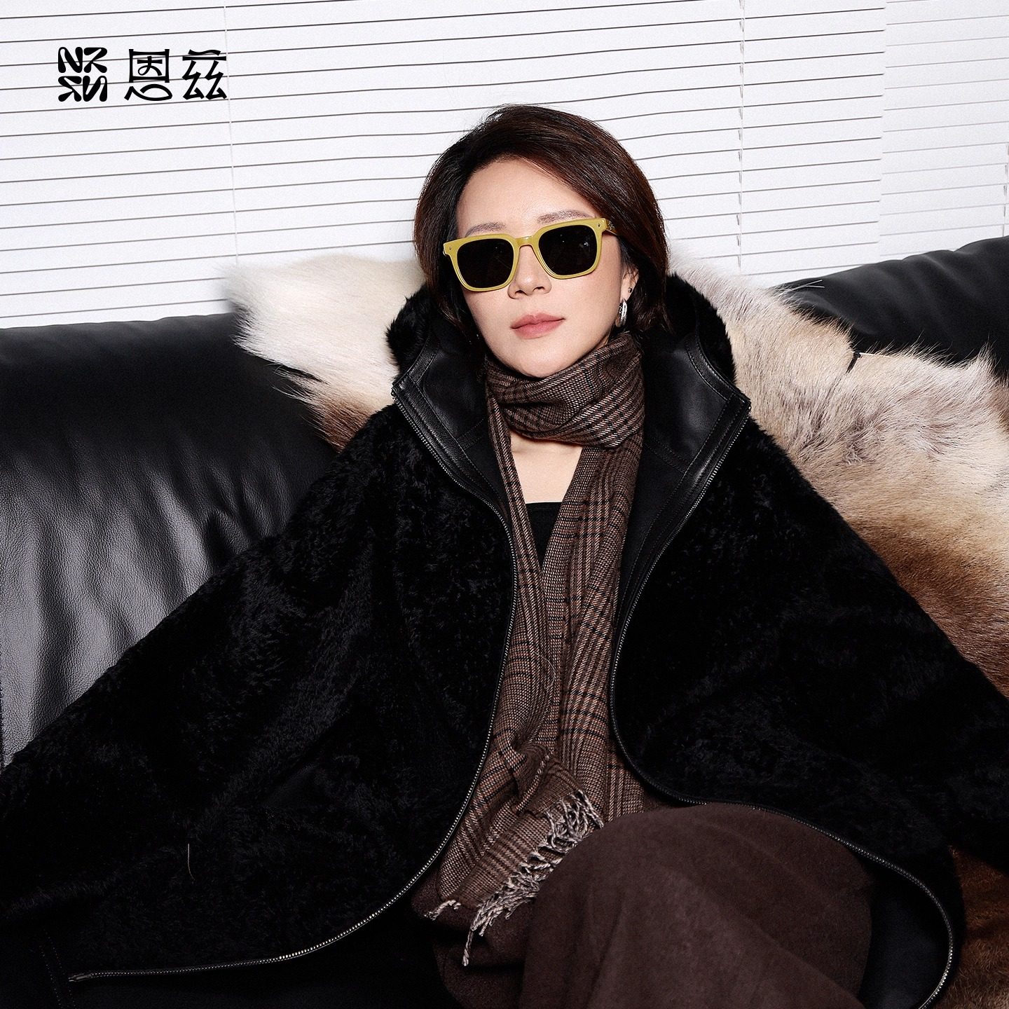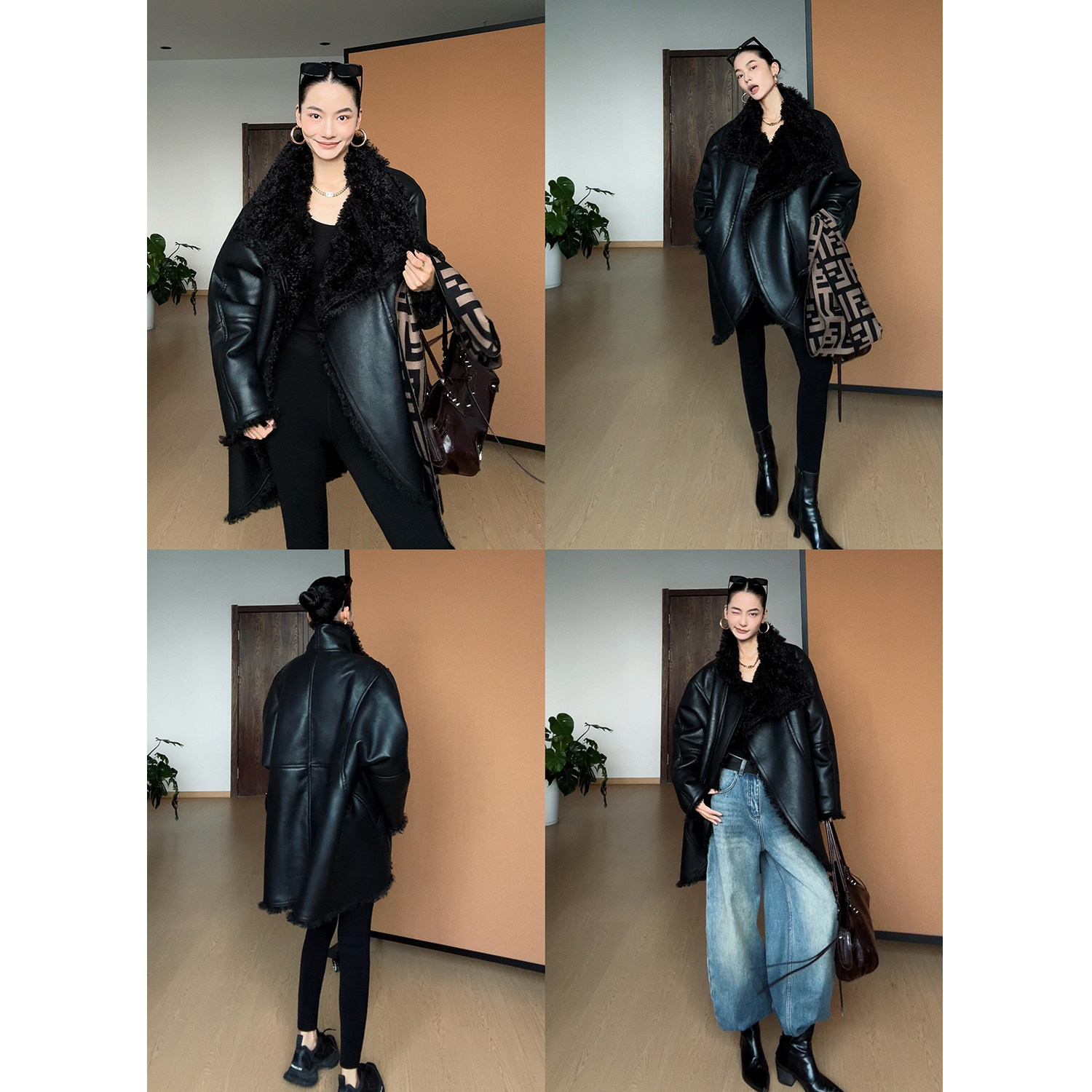 CIZZLEMORE [Tokyo Aristocrat] double-sided cocoon-shaped design with fleece and thickened fur integrated leather jacket