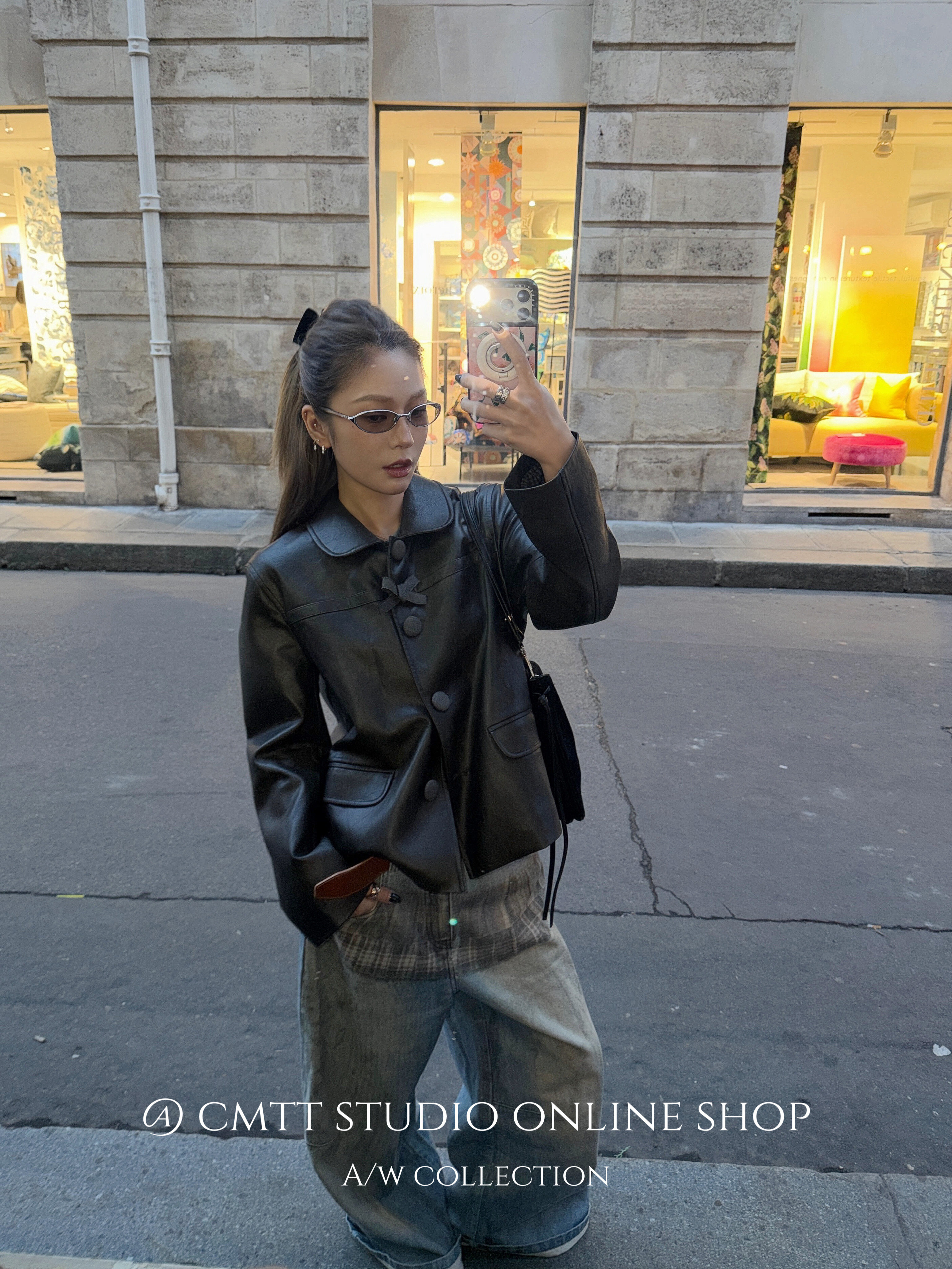 AOMALM Shaoye Eye "Underworld Daughter" % American cool style motorcycle PU leather jacket women's autumn jacket top