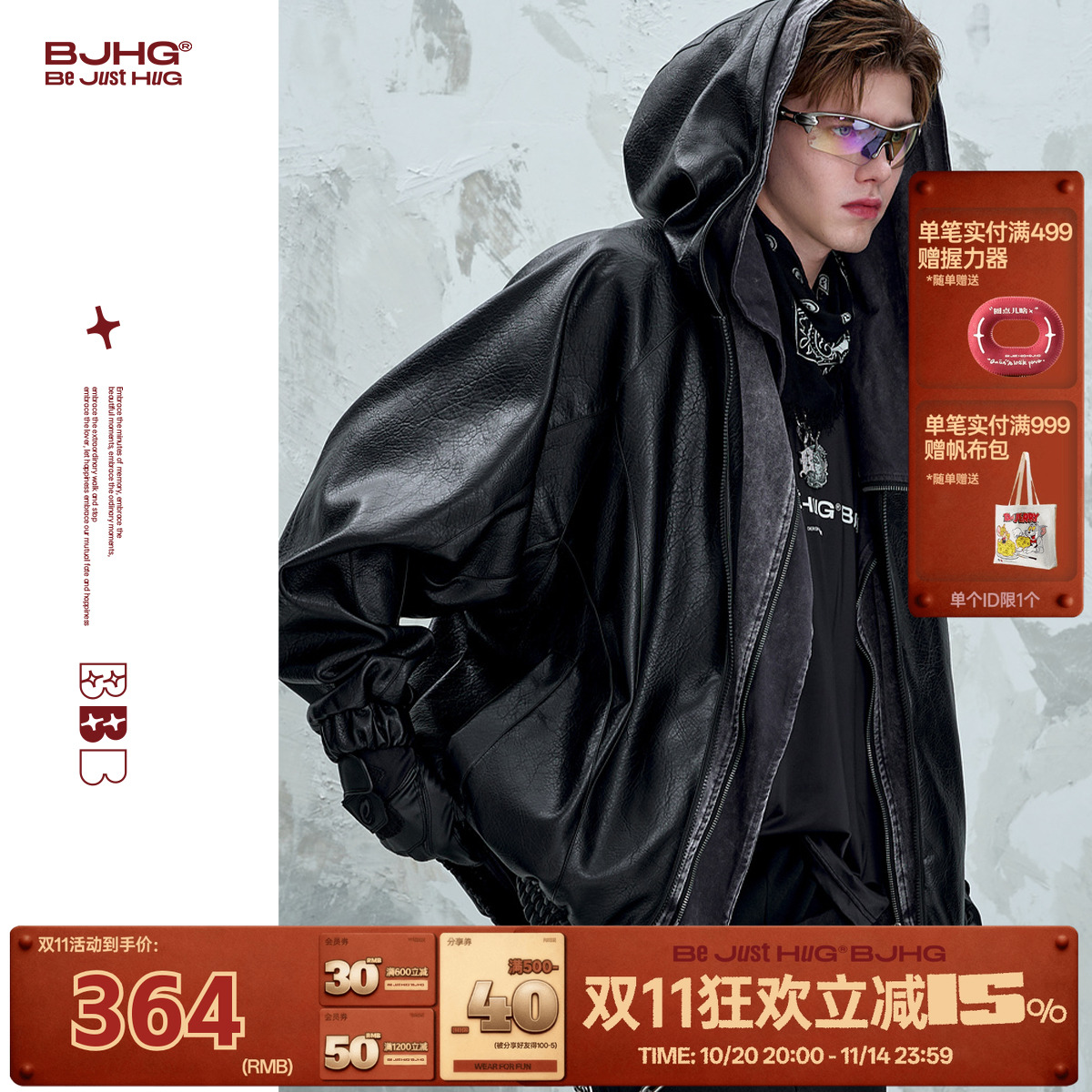 BJHG reckless retro hooded leather jacket men's autumn trendy brand motorcycle ruffian handsome leather jacket jacket for women