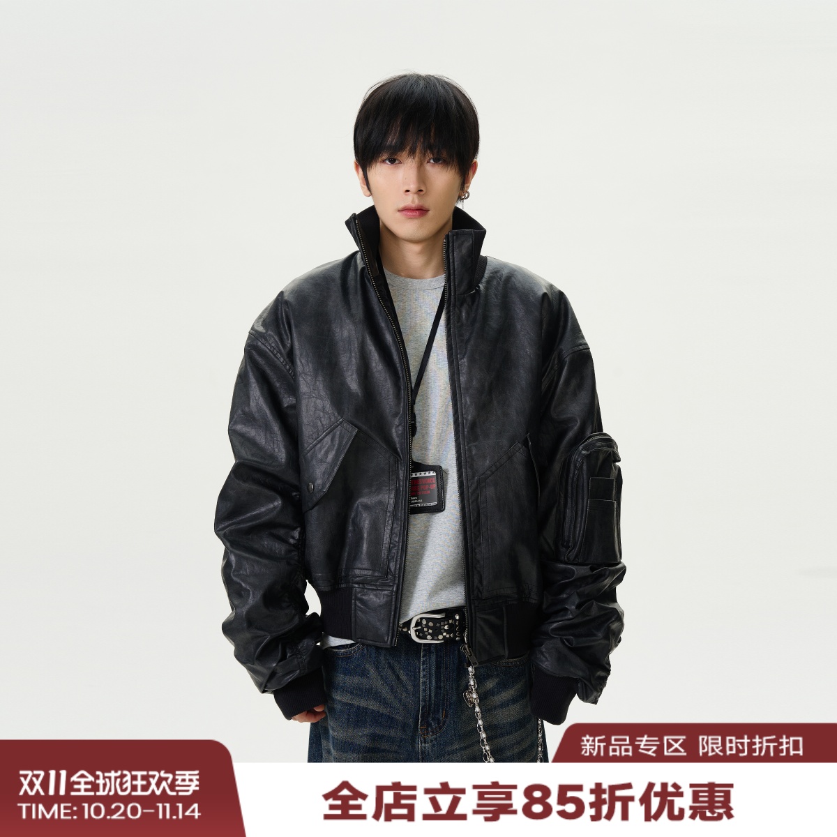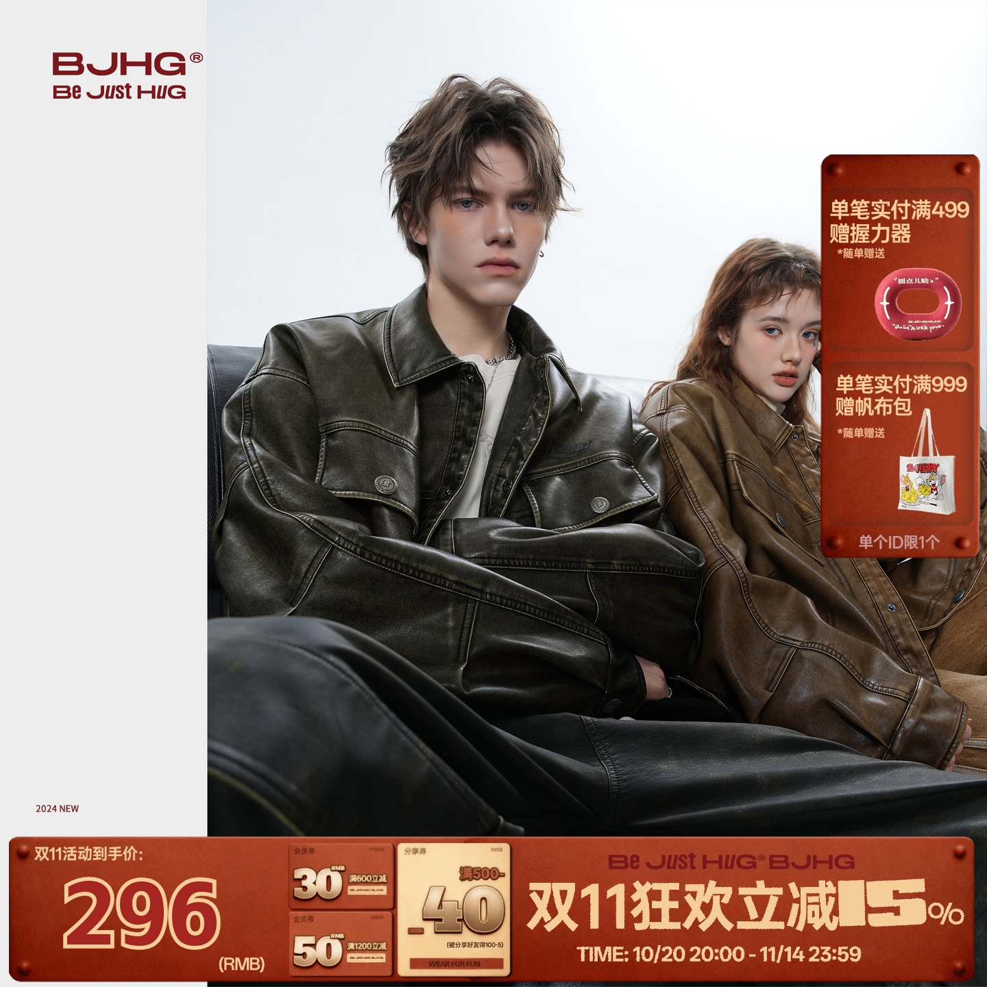 BJHG Reckless Maillard Washed Leather Jacket Men's and Women's Autumn Vintage Leather Jacket Couple Outerwear