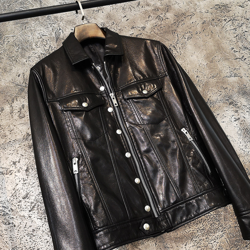 G FOR INNERTHOUGHT Spanish calfskin zipper leather jacket leather jacket motorcycle short men