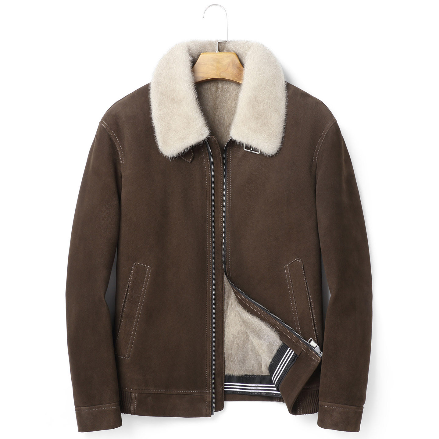 New leather jacket men's mink liner lapel fleece goat leather jacket fur jacket winter