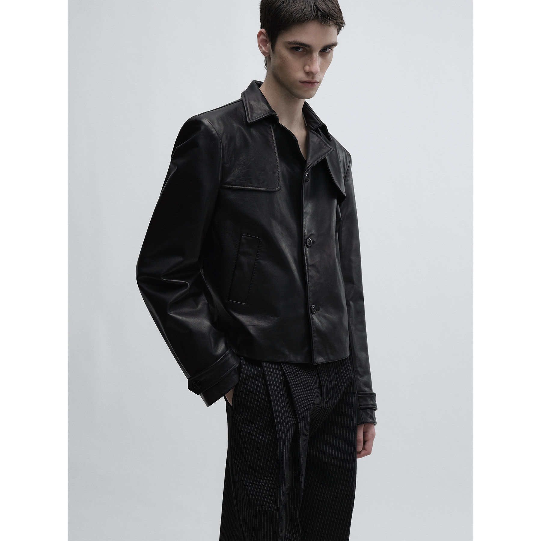 SEHENBLAU Designer Men's Imported Cowhide Cropped Lapel Design Genuine Leather Jacket Jacket