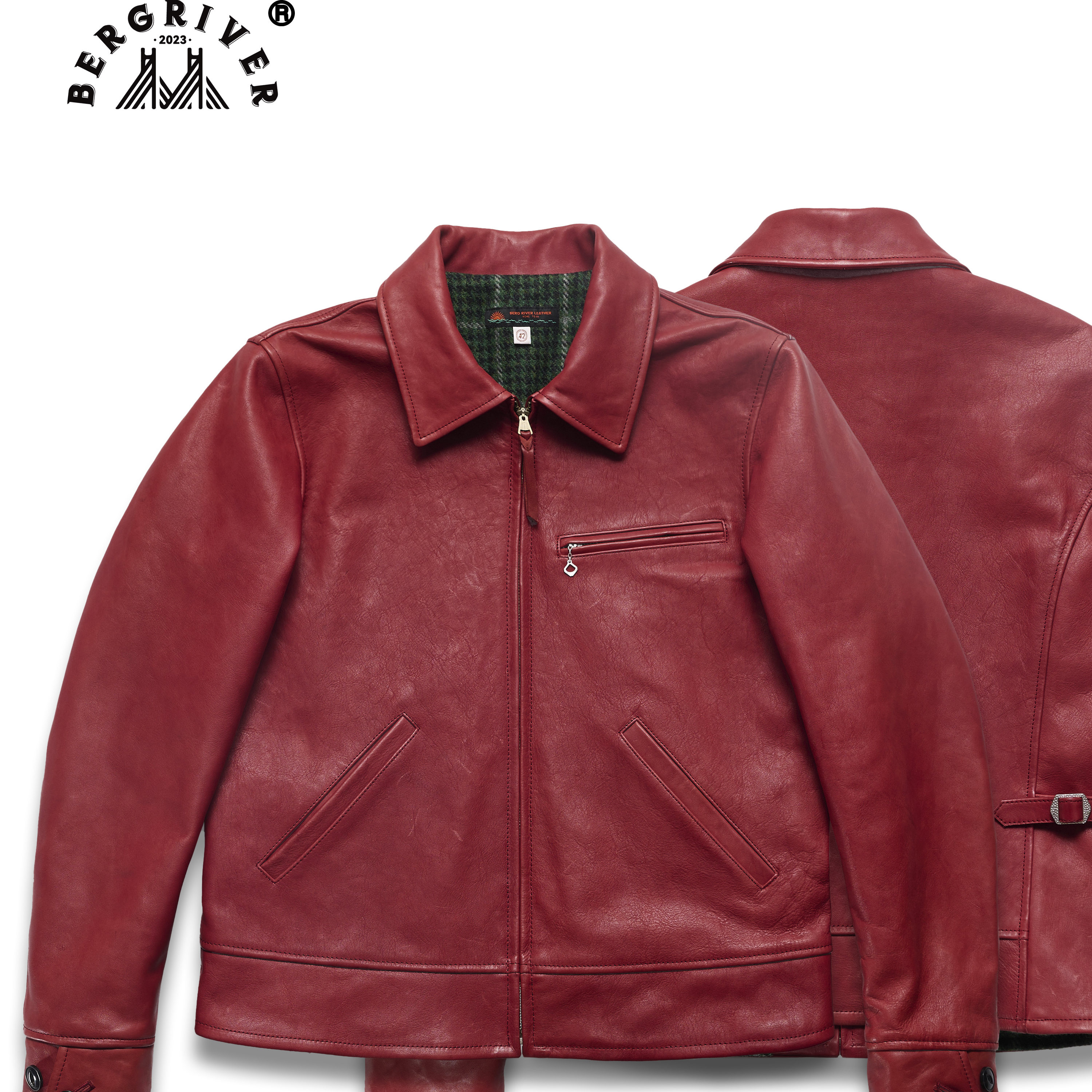 BERG RIVER Year of the Horse Limited edition Burkendi red 1930'S leather jacket short biker jacket fleece lining