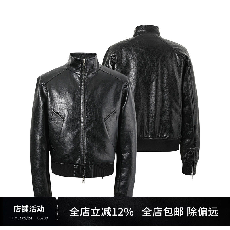 Original national tide cross CROSSZIP vegetable tanned sheep leather distressed erosion jacket oil wax leather clothing visual system